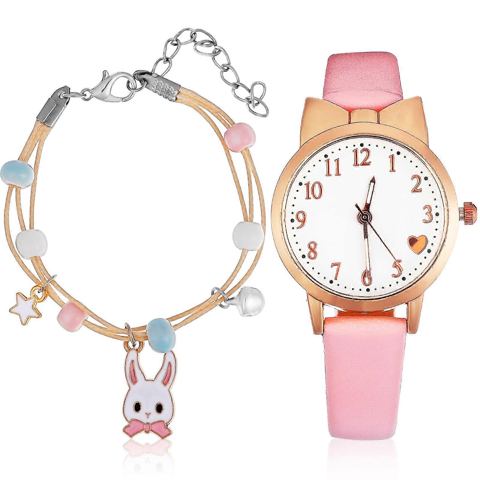 Kids Watch Quartz Watch for Time Display with Cartoon Rabbit Bracelet