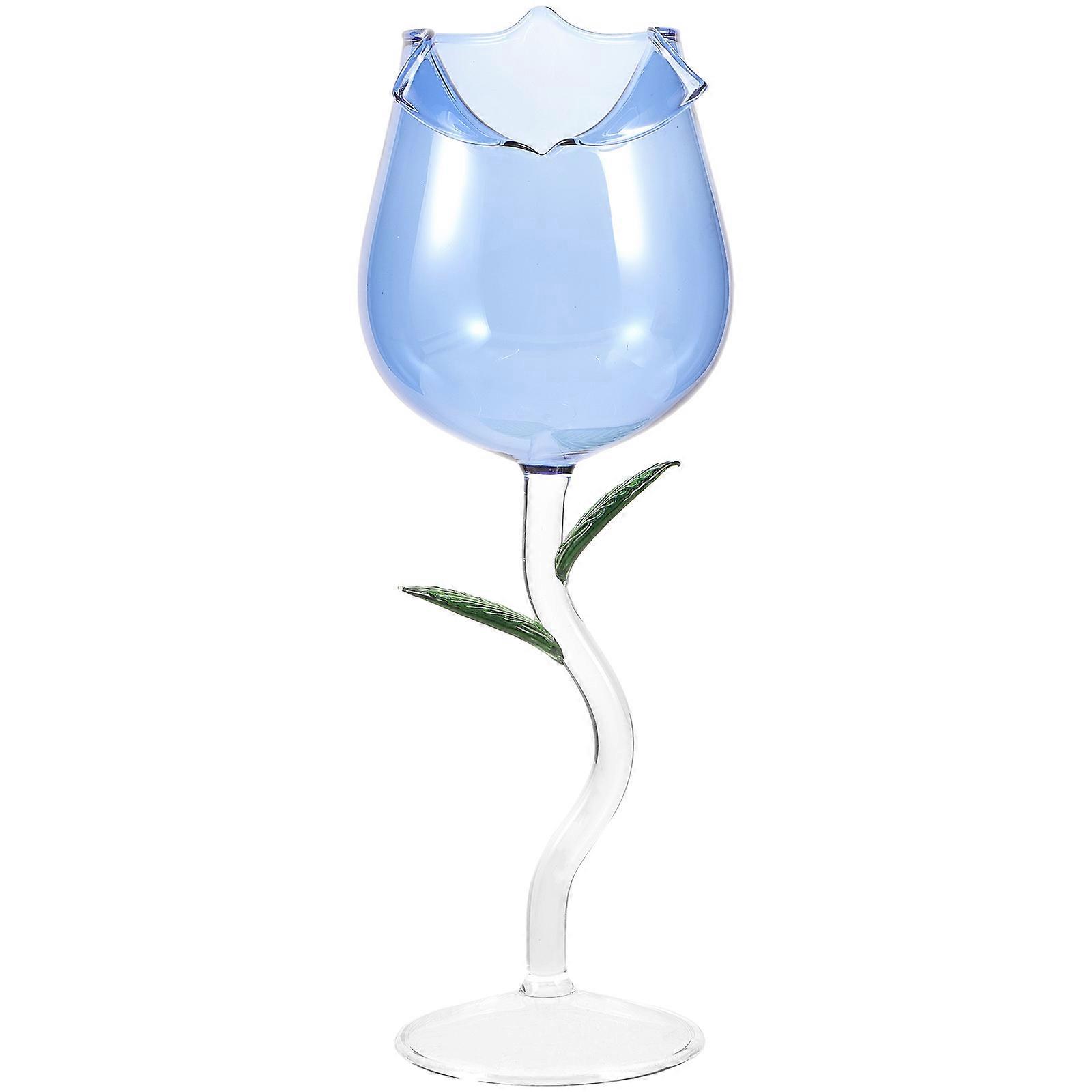Floral Wine Goblet For Birthday Formal Dinner Wine Blue Glass 1Pack