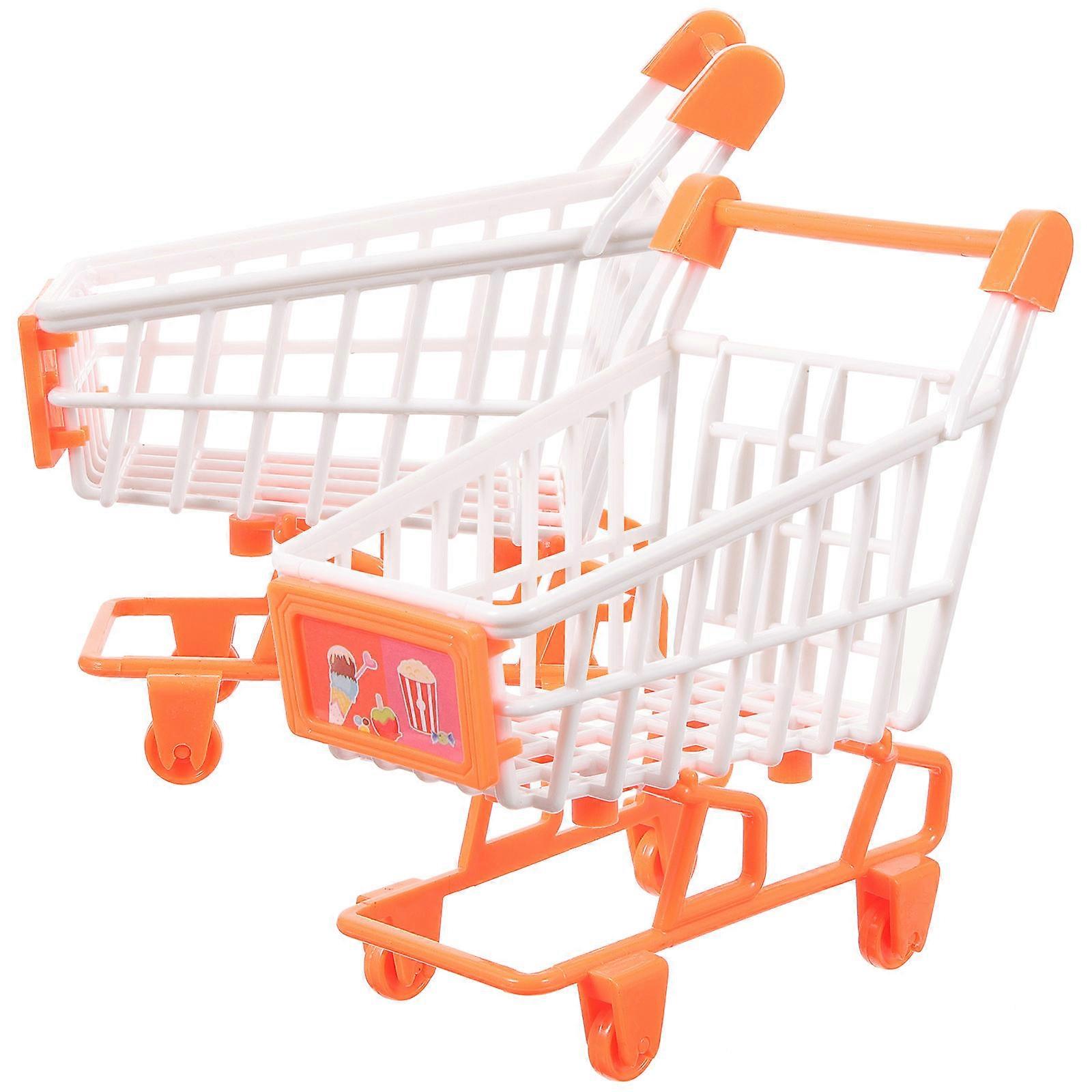 Kids Grocery Cart Toy for Toddler Pretend Play 2Pcs Orange Plastic