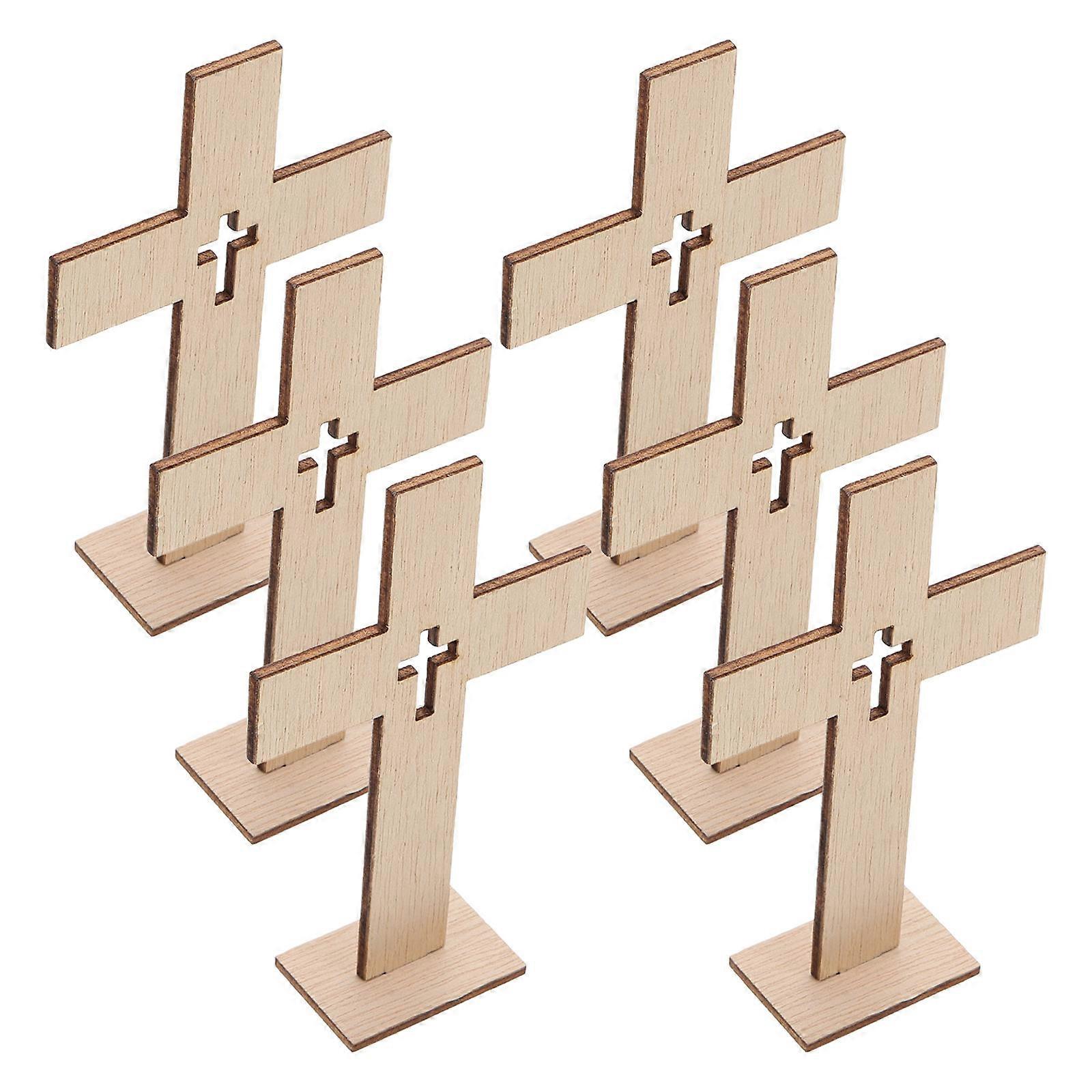 Light Yellow Wooden Cross Ornament for Decor 6Pcs Craft Cross Adornment