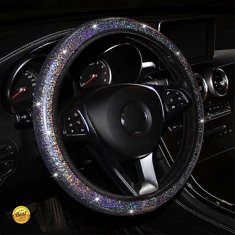 New Car Steering Wheel Cover Glitter Rhinestones Imitation Diamond Faux Leather Anti-slip For Girls Auto Interior Accessories
