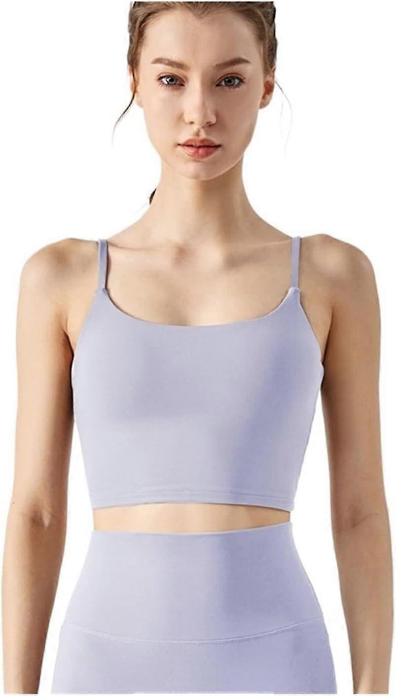 Womens Spaghetti Strap Sports Bra Scoop Neck Wireless Padded Yoga Bra Camisole Summer Athletic Workout Crop Tops