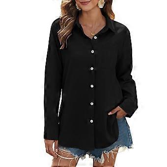 Womens Button Down Casual Loose Fit Shirt Blouse Long Sleeve Top Comfortable Office Wear Chic Black XL