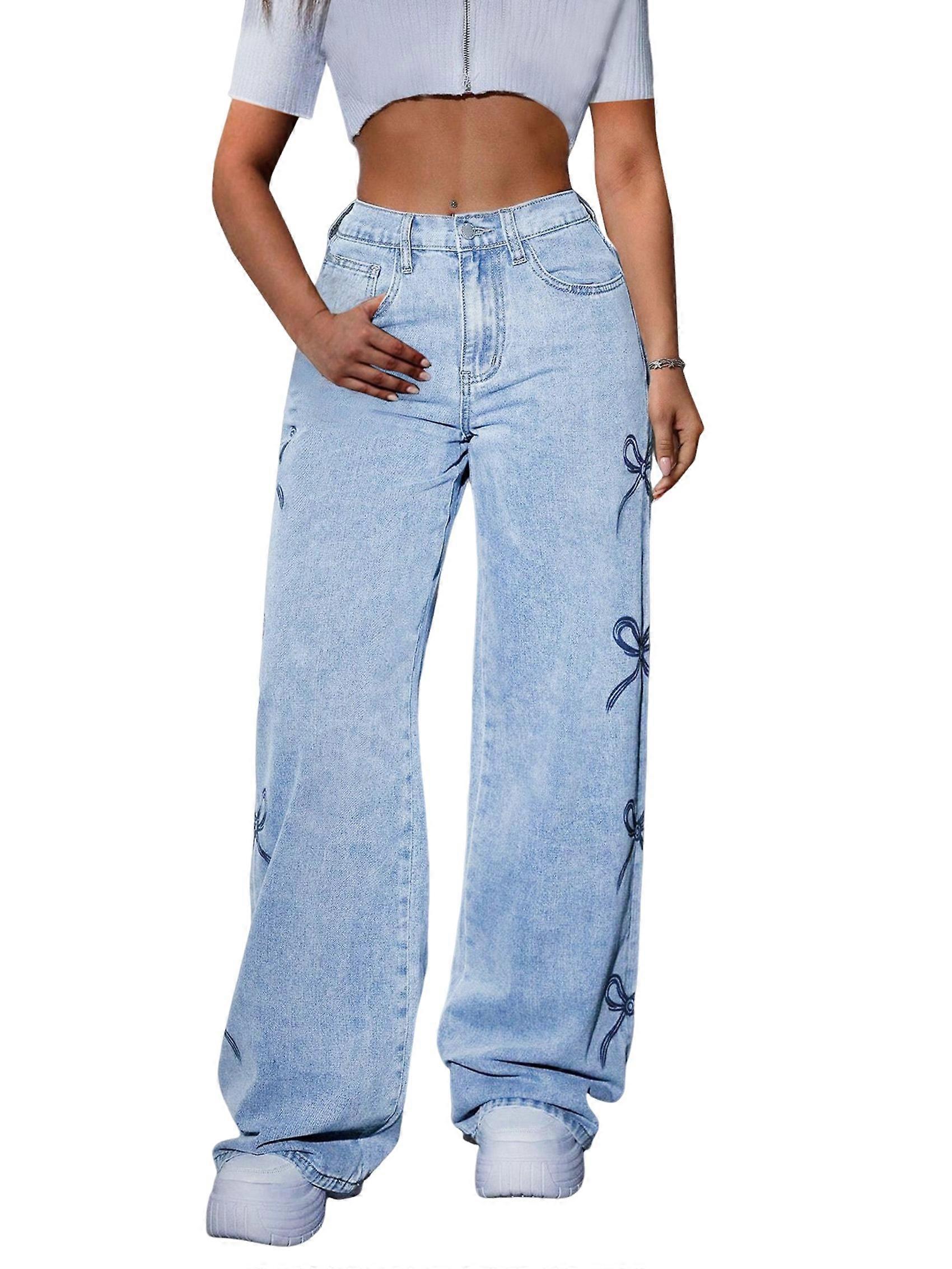 Cute jeans for women are made from a blend of 65% Cotton, 35% Polyester that makes them ideal for various weather conditions, offering both durability and comfort High waisted baggy jeans are designed with wide legs to make wearing more comfortable and add cute bows elements to make them more designed and fashionable Cute jeans for women/bows pants for women / baggy jeans for women /wide leg baggy jeans These bows pants are a versatile pair for everyday wear, which can be paired with a variety of tank tops, short sleeves, hoodies, sweaters, casual shoes and high heels ect Size: M=US6=UK10=EU38(cm / inch) Hip: 102.0 / 40.16, Pants Length: 105.0 / 41.34 Colour: Light Blue Material: 65% Cotton, 35% Polyester Package Contents: 1*Pant Only the above package content, other products are not included. Note: Light reflection and different displays may cause the color of the item in the picture a little different from the real thing. The measurement allowed error is +/- 1-3cm.