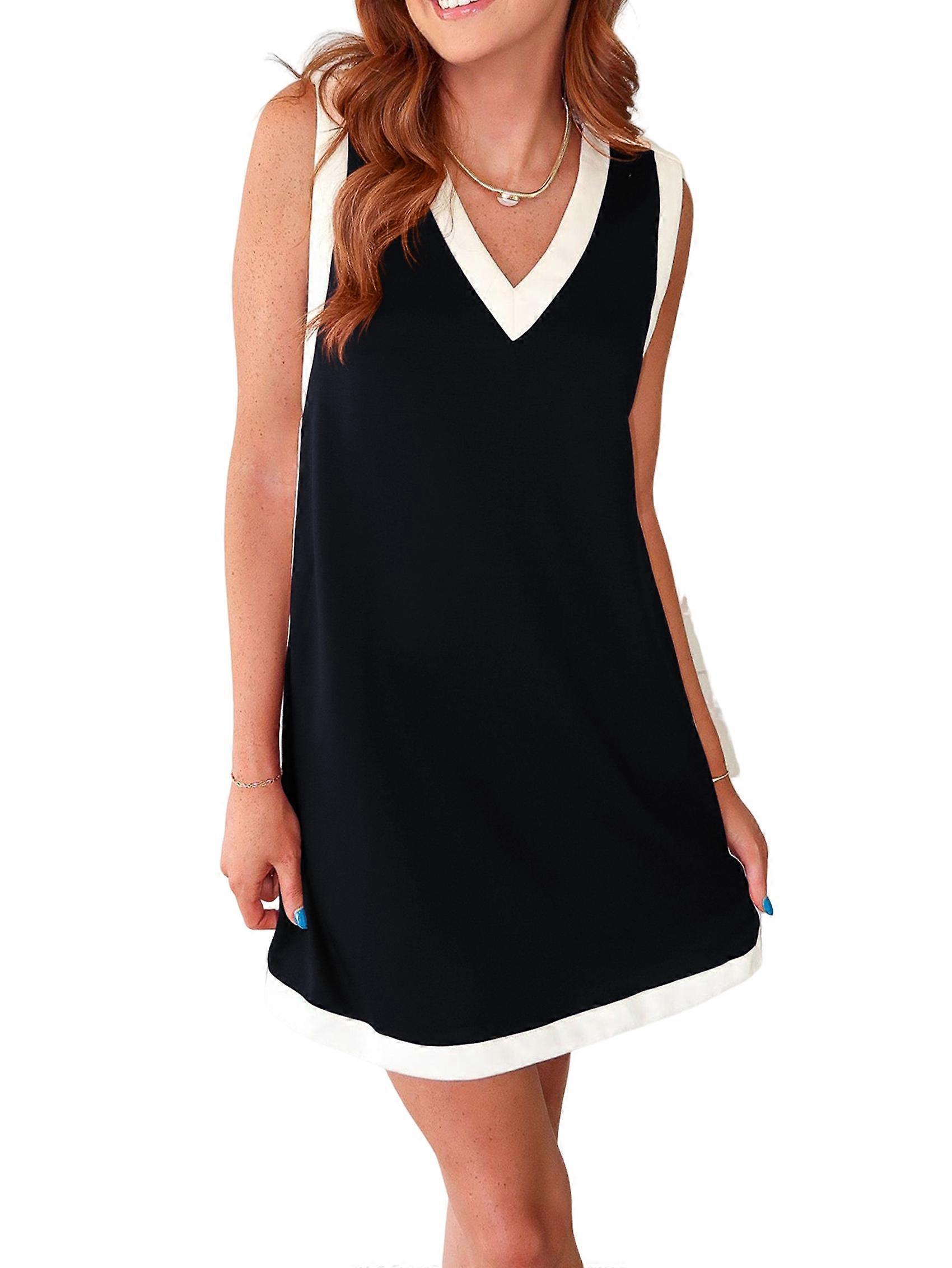 Womens Summer Sleeveless Pullover Tops Crewneck Patchwork Sweatshirt Dress Casual Mini Dresses Black L