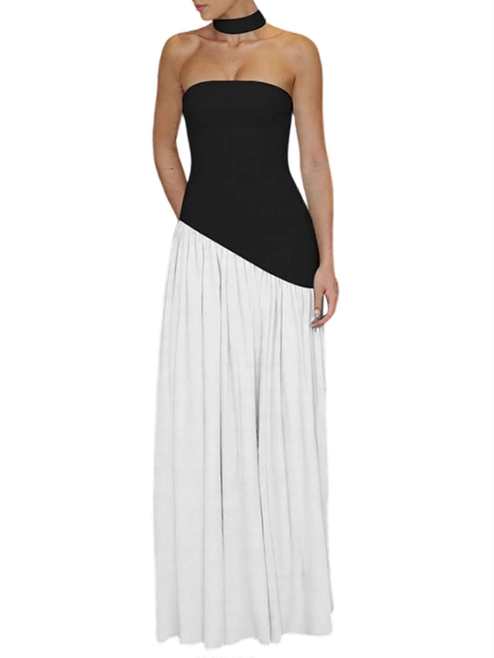 Strapless Halter Drop Waist Bridesmaid Dresses for Women with Scarf Split Formal Evening Black S