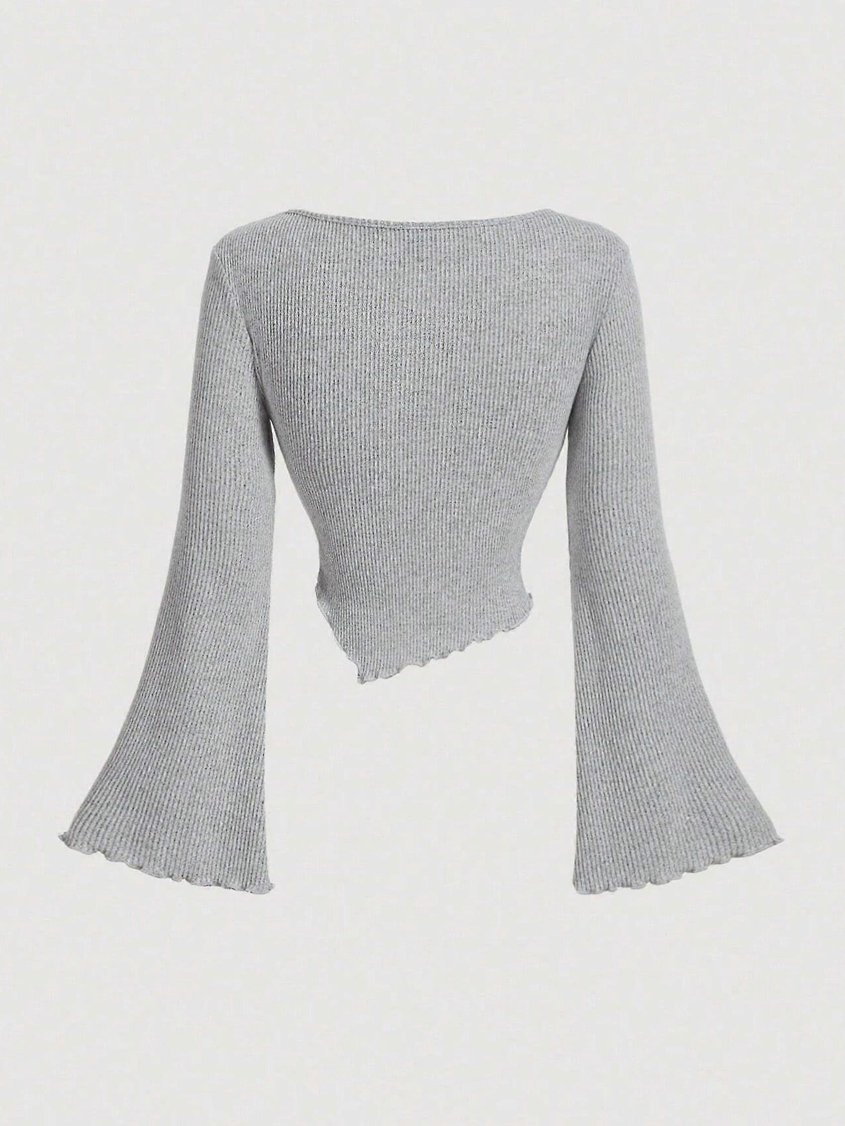 Women'S Spring Long Sleeve Y2K Crop Top Off Shoulder Fitted Knit Tee Shirts Going Out Tops Light Gray XL