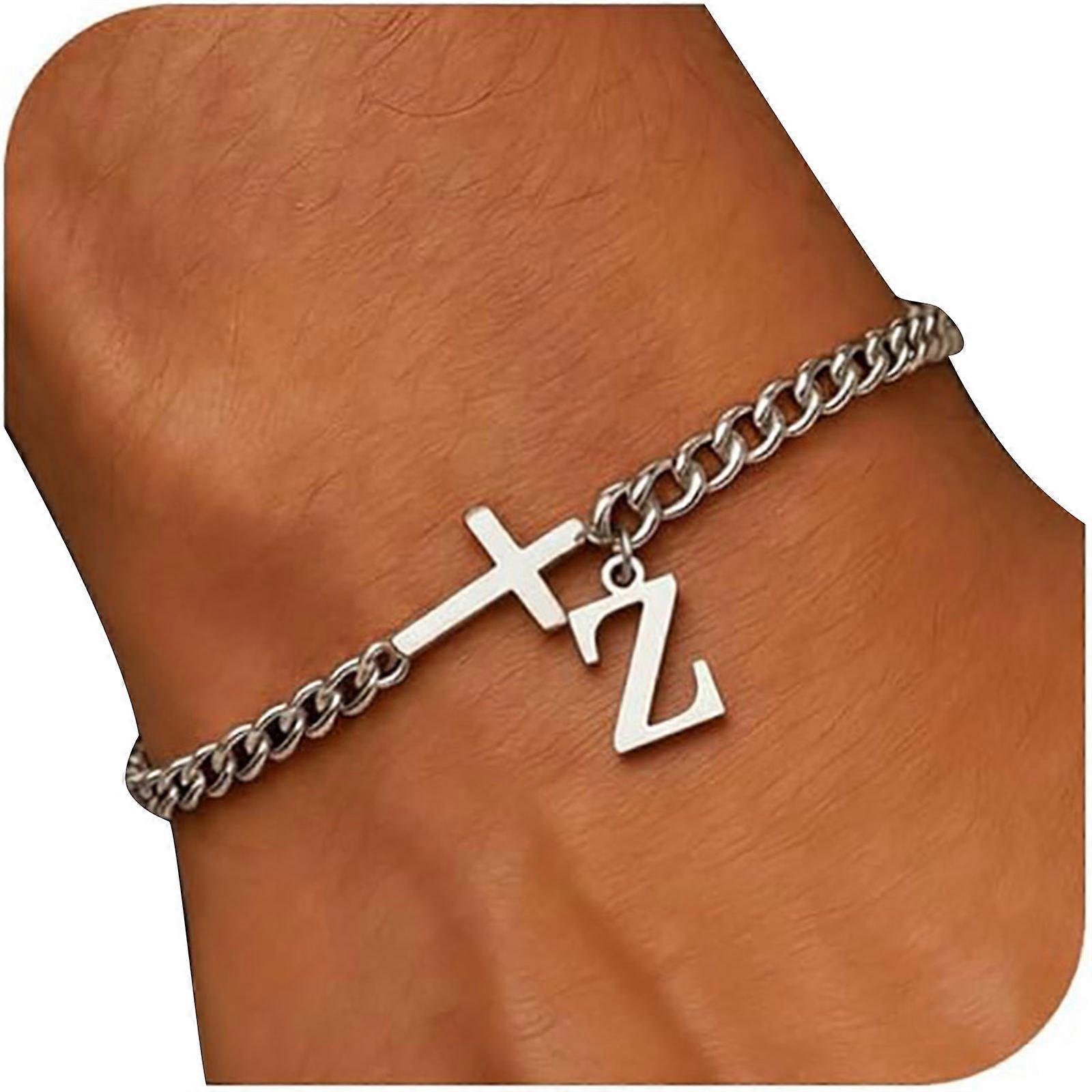 Comfortable and Light Crucifix Letter Bracelet Stainless Steel Initial Charm Handchain Accessory for Extended Wear Multicolor