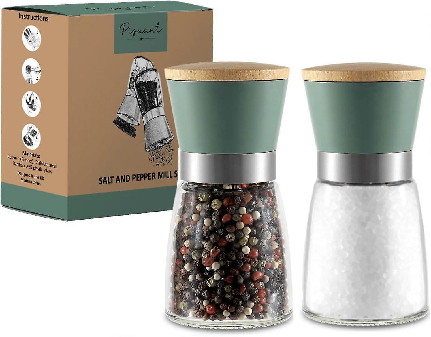 Salt and Pepper Mill Set of 2 Adjustable ceramic Salt and pepper Grinders -Refillable Salt & pepper shakers Sage Green