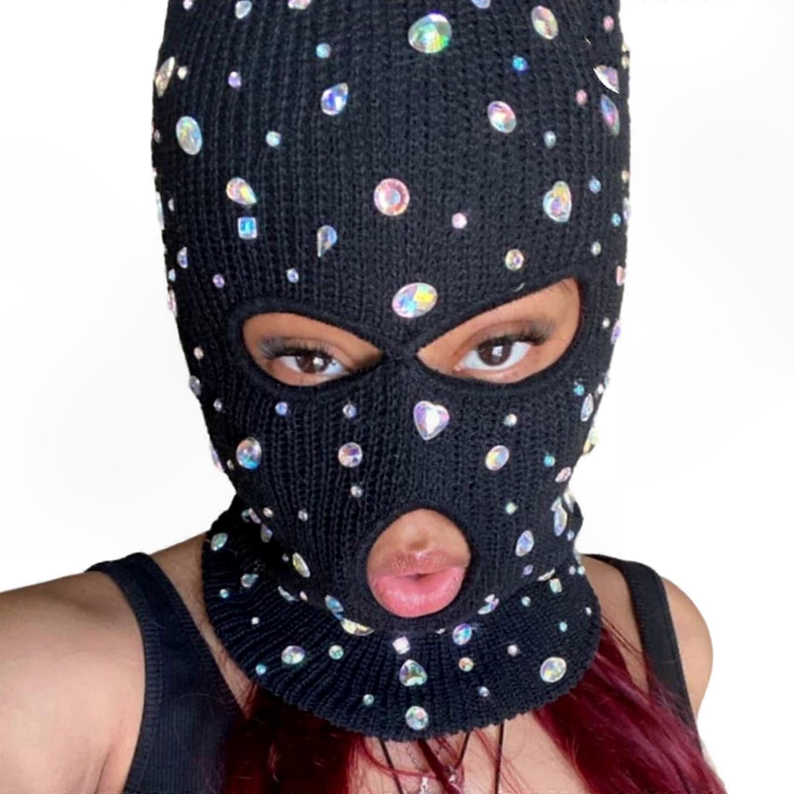 Jeweled Face Cover Hooded Neck Warmer for Outdoor Activities and Halloween Cosplay Accessory
