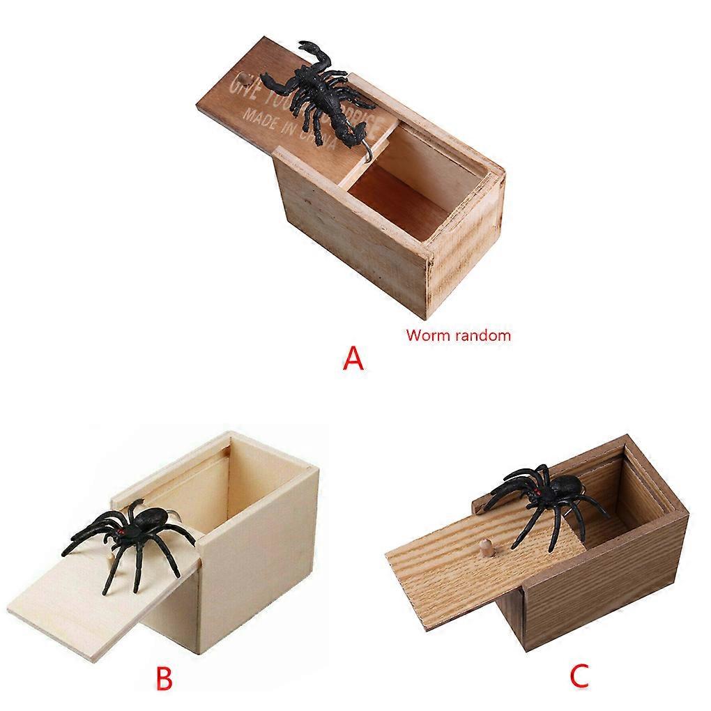 Wooden Prank Spider Scare Box in Case Trick Play Joke Gag Toys Gifts