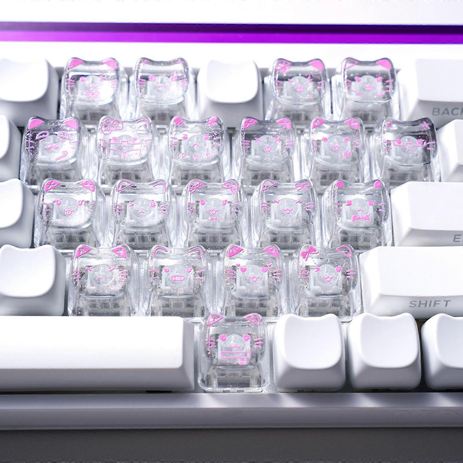 Glowing Through Cute Cats Kitty Keycap Set 21Key MAO Height Design PC Material For Keyboards Customization Multicolor