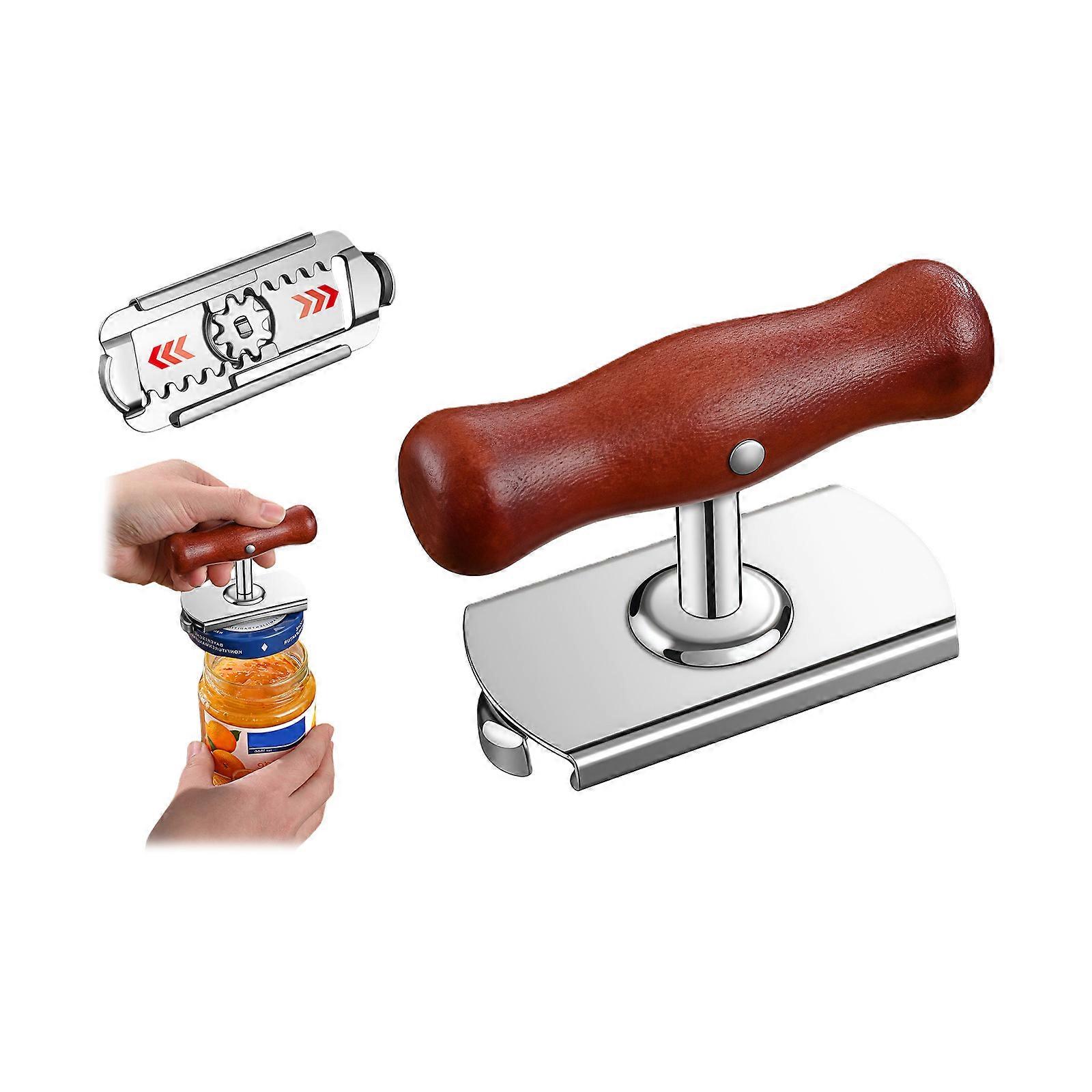 Jar Opener with Comfortable Wooden Grip Stainless Steel Can Bottle Opener Practical Kitchen Essential Tool Multicolor