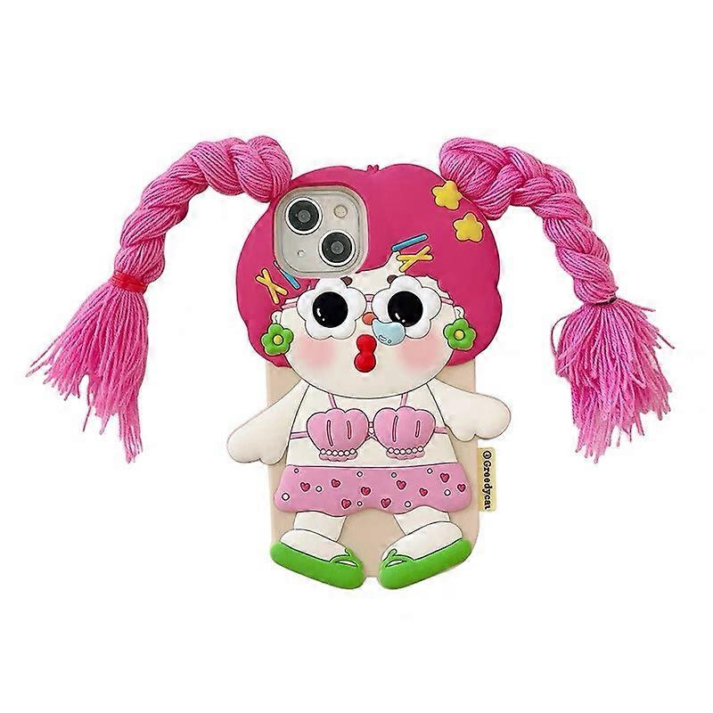 3D Funny Pink Hair Bikini Girl Phone Case For iPhone 16 Pro Max 15 14 13 12 Cove
