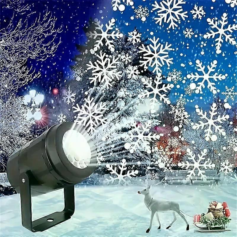USB Powered Snowflake Projector Light White Snow Pattern Rotating LED Stage Lamp for Holiday Party Christmas Decor New Year Gift