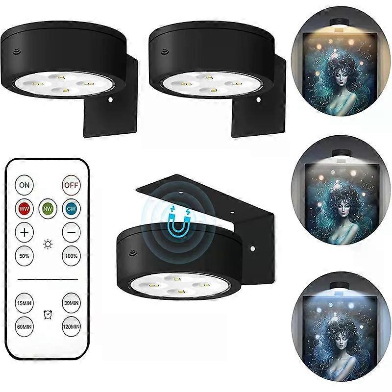 Battery Operated Picture Light Magnetic Painting Lights with Remote Dimmable Timer Art Display Lamp with 3 Lighting Mode