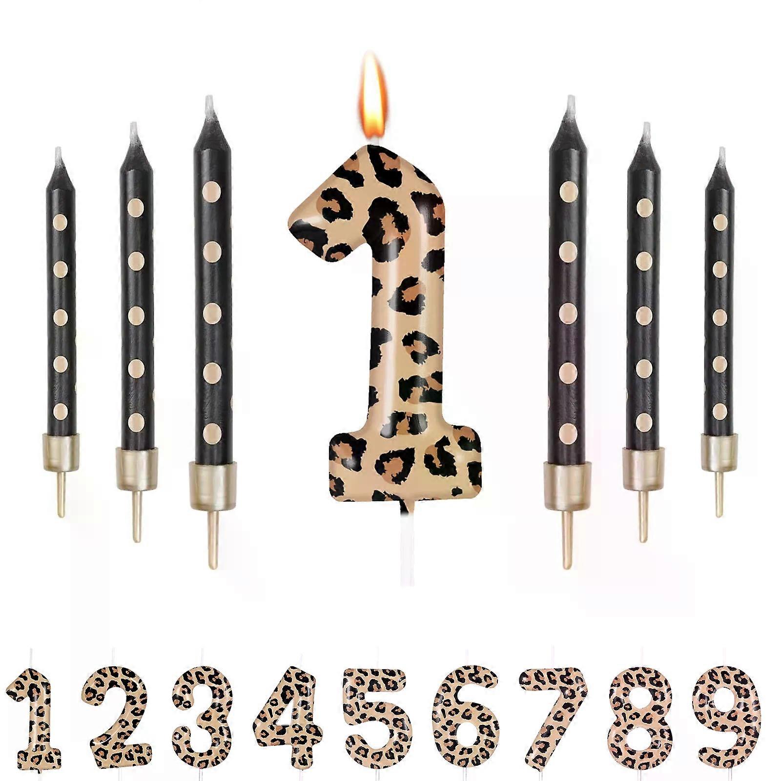 7pcs Leopard Print Number 0-9 Candles Cheetah Birthday Cake Candles Leopard Party Decorations Animal Birthday Party Decorations