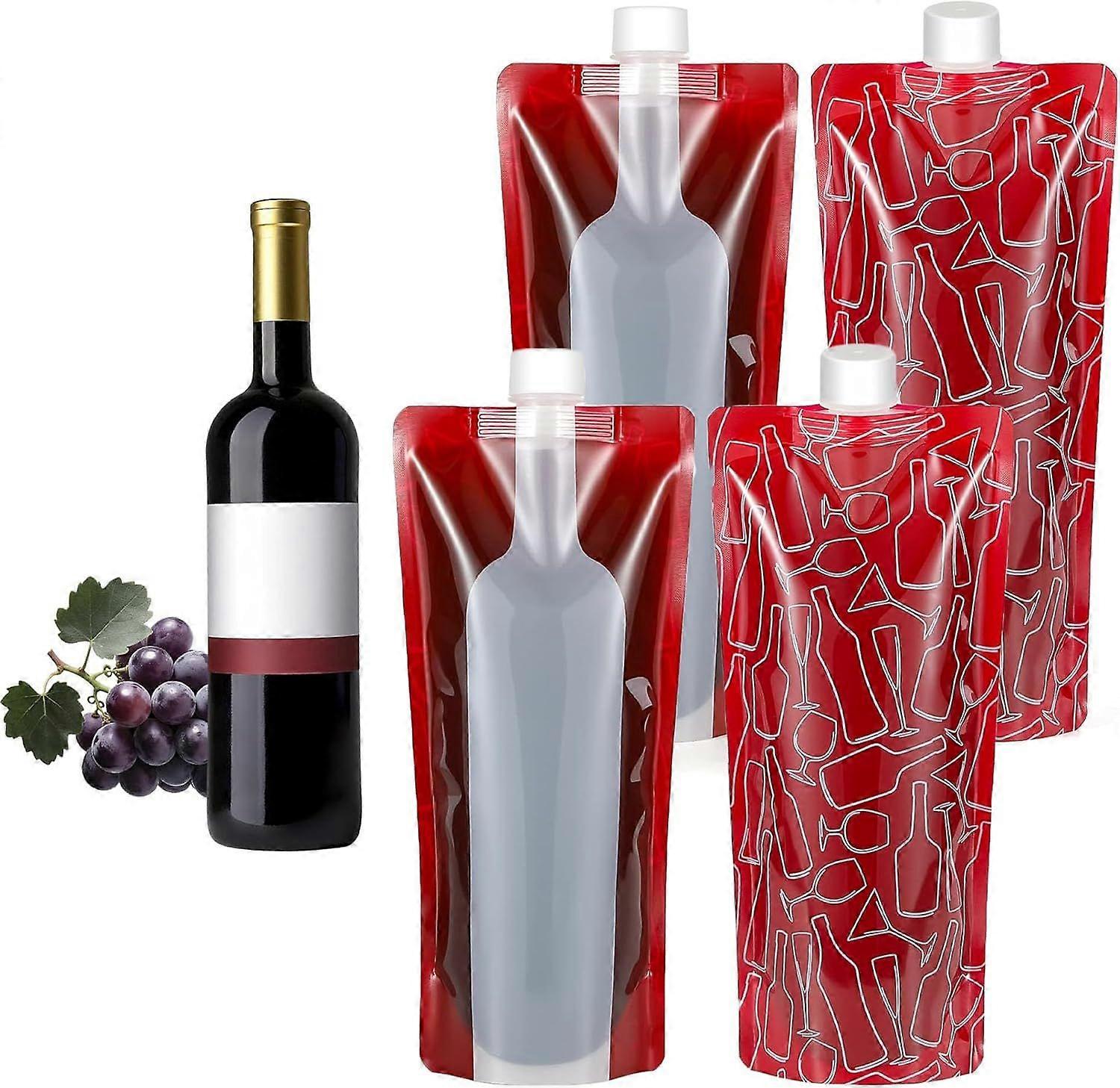4 Pack Foldable Wine Bag 750ml Portable Drink Pouches Plastic Water Bottle Wine to Go Bag Reusable Plastic Wine Bottle Liquid Leak Proof Flask Holder