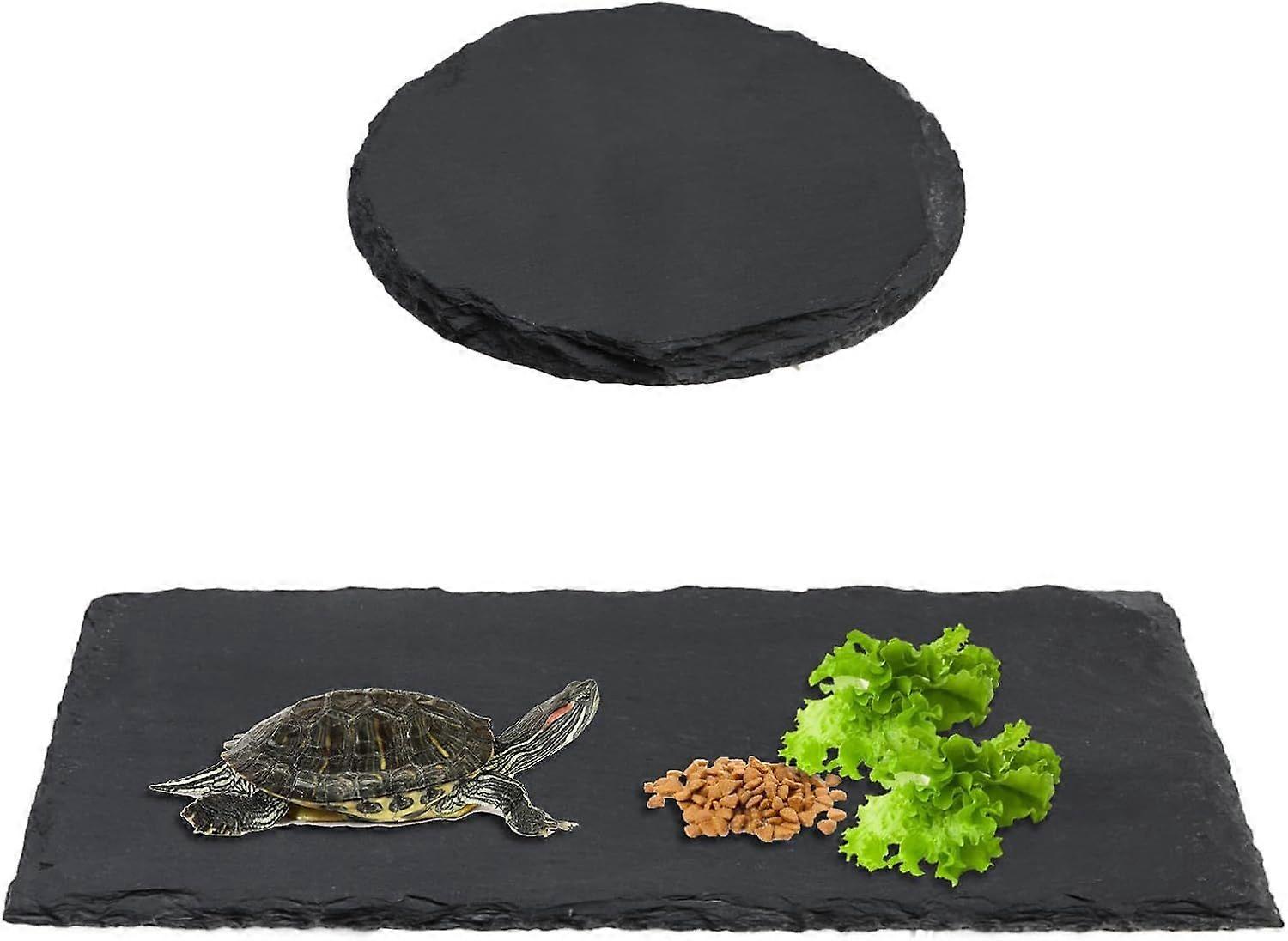 2 Pack Reptile Basking Slate Platform Aquarium Tortoise Bathing Resting Platform Turtle Habitat Slate Pad Turtle Feeding Food Bowl Dish Resting Natura