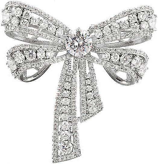 Elegant Bow Knot Silver Plated Brooch Pin with Rhinestones & CZ Crystals for Women Men Dainty Inspired Wedding Accessory for Dresses Scarves Suits Li