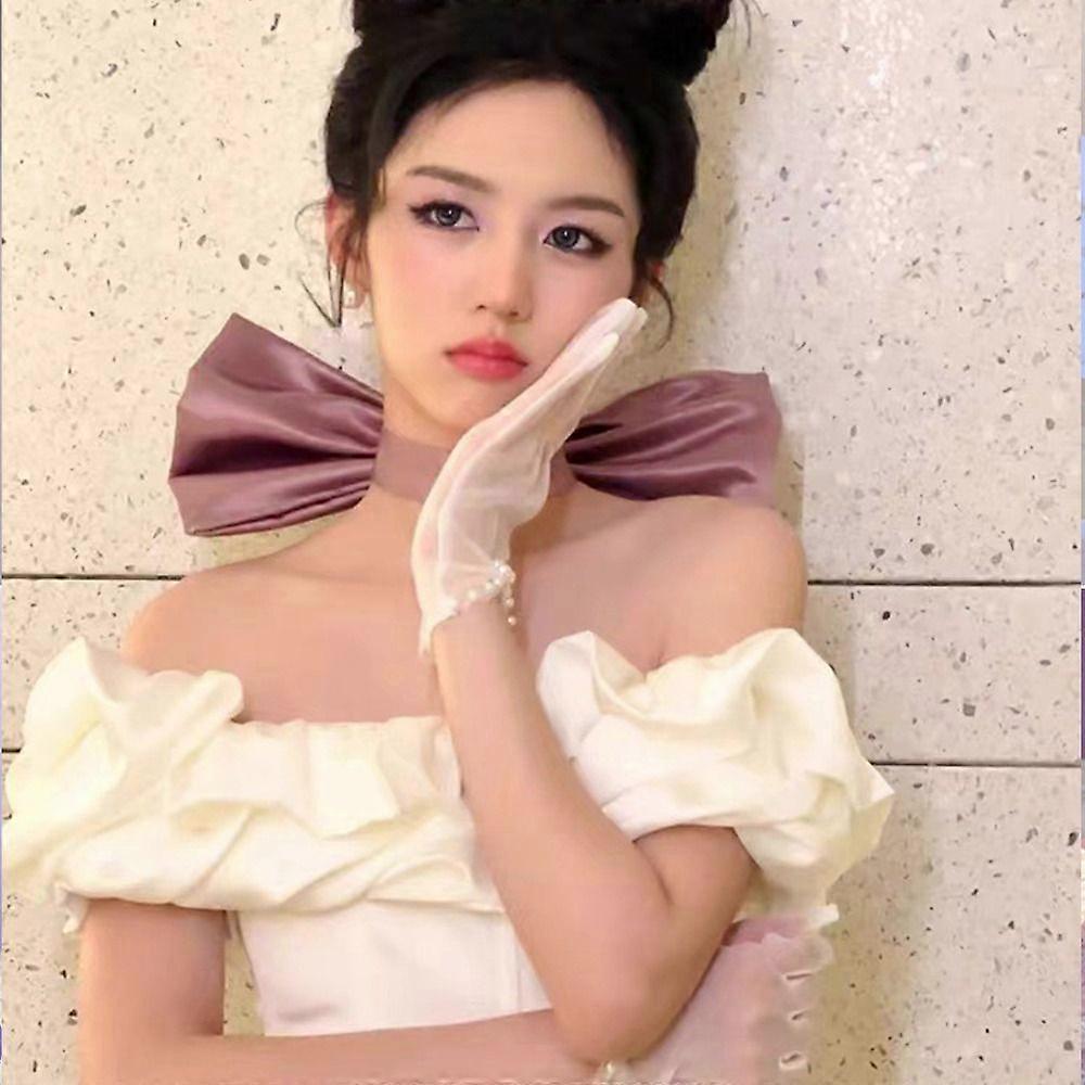 Y2K Style Cloth Purple Bow Costume Neck Decoration Big Bowknot Collar Duck Billed Hair Clips Photo Accessories Satin for Girls