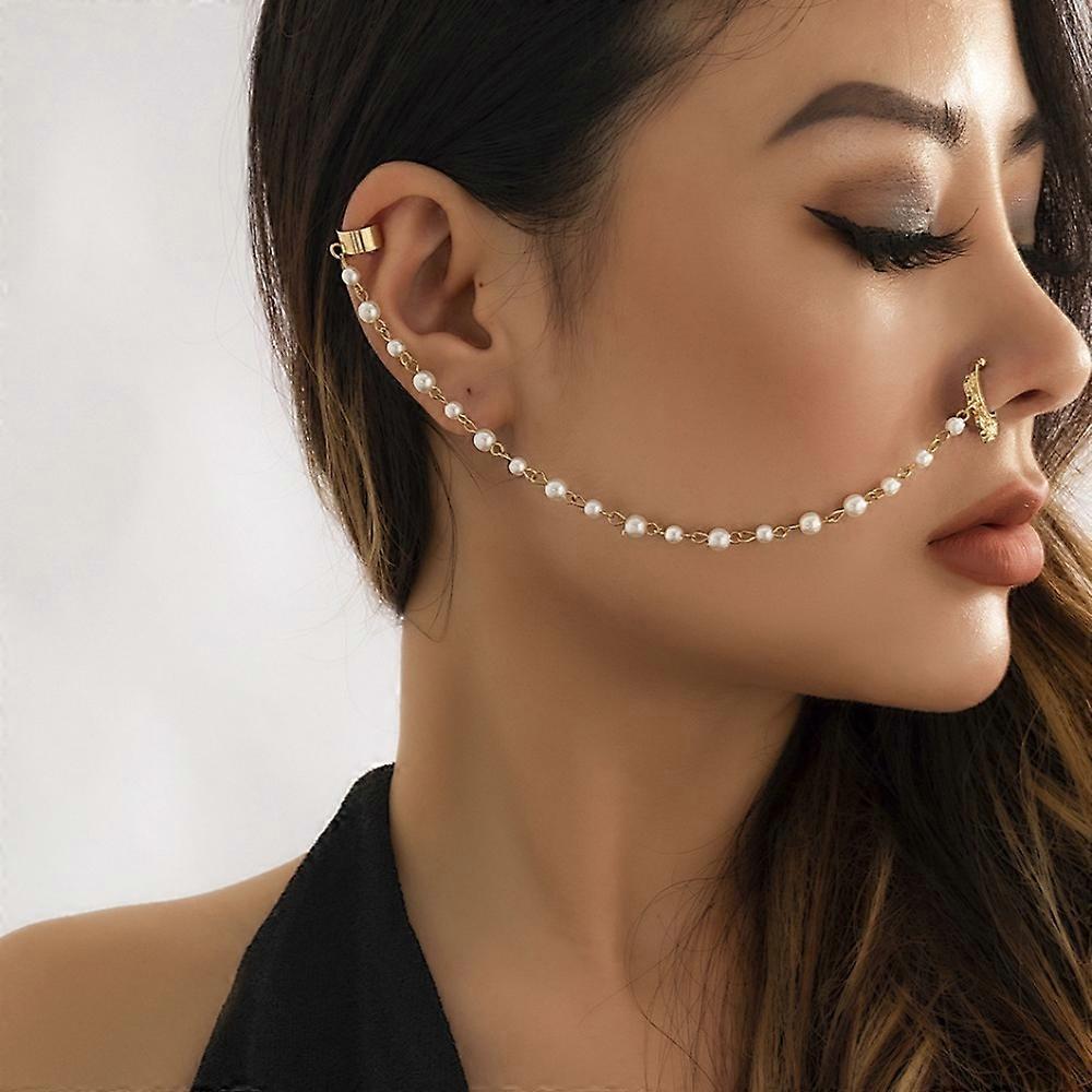 New Fashion Piercing Jewelry Women Temperament Imitation Pearl Butterfly Tassel Chain Sweet Punk Nose Clip