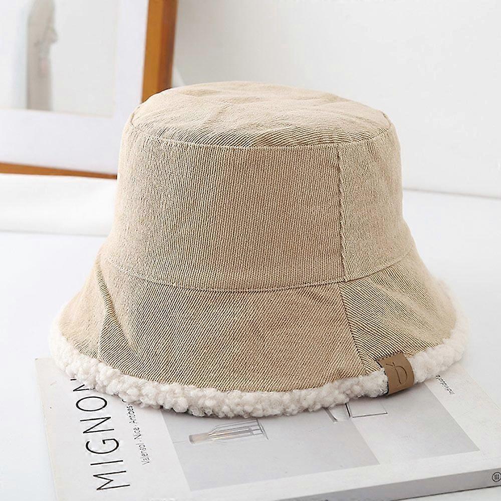 Trendy Lambswool Winter Bucket Hat Thickened Soft Fisherman Cap Warm Corduroy Beanies Cap for Women