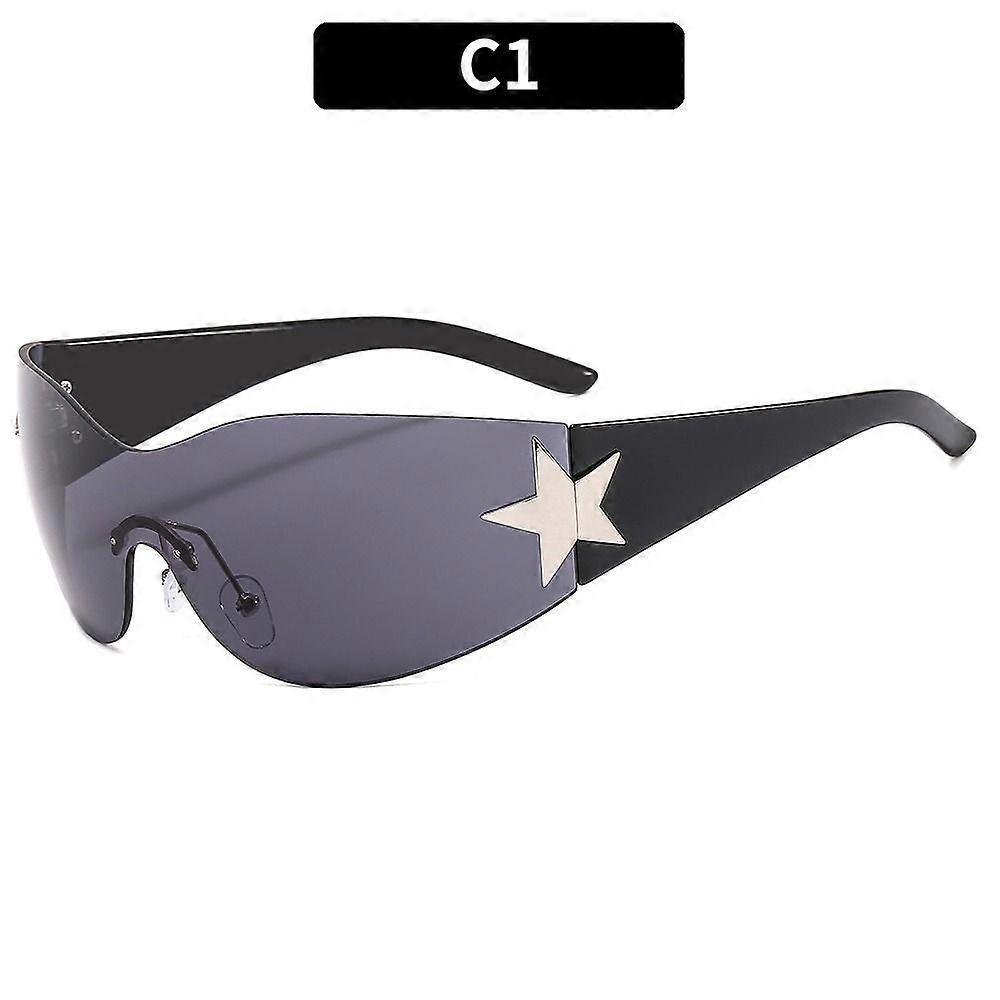 Trendy 2000'S Eyewear Rimless Goggle Shades Wrap Around Sports Sun Glasses Y2K Sunglasses for Women Men