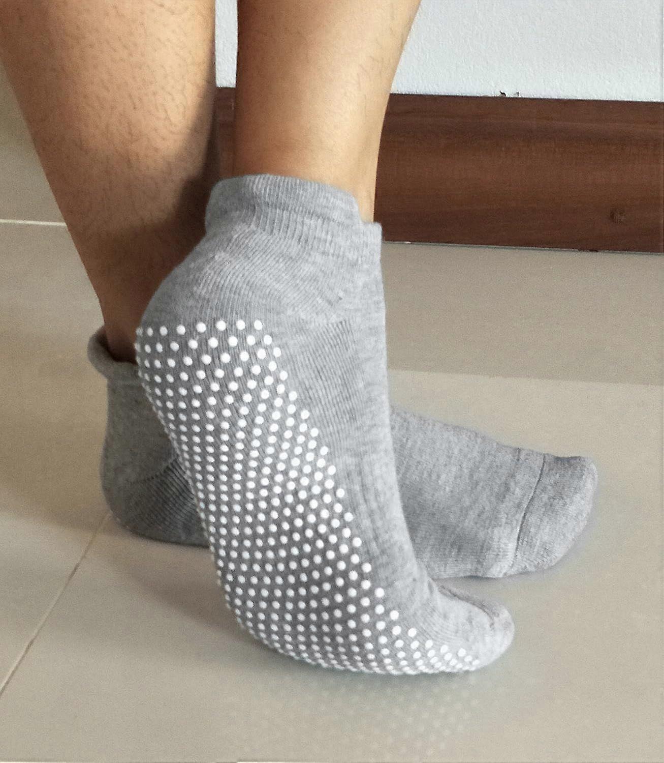 1. Non-Slip Grips: With 100% silicone grips on the bottom, these low cut socks are fully covered to protect your feet. We promise that the non slip socks for women will give you extra stability during the riskiest maneuvers and prevent you from falling. 2. Cotton Material: 100% cotton fabric is breathable and sweat-wicking, providing absolutely non-slip socks with a non-slip surface on the bottom of the socks. Keeps your feet dry and comfortable for long periods of time. 3. ONE SIZE FITS MOST: These non slip socks for men and women fit all foot shapes and sizes. Unisex black and grey colors for easier selection 4. NOT ONLY SUITABLE FOR YOGA: Our womens socks with handles on the bottom are not only suitable for sports yoga, pilates, barre, dance workout at home, but also perfect for hospital, pregnancy, elderly personal care, etc. They offer you security and stability in all situations where you need to be careful not to fall.