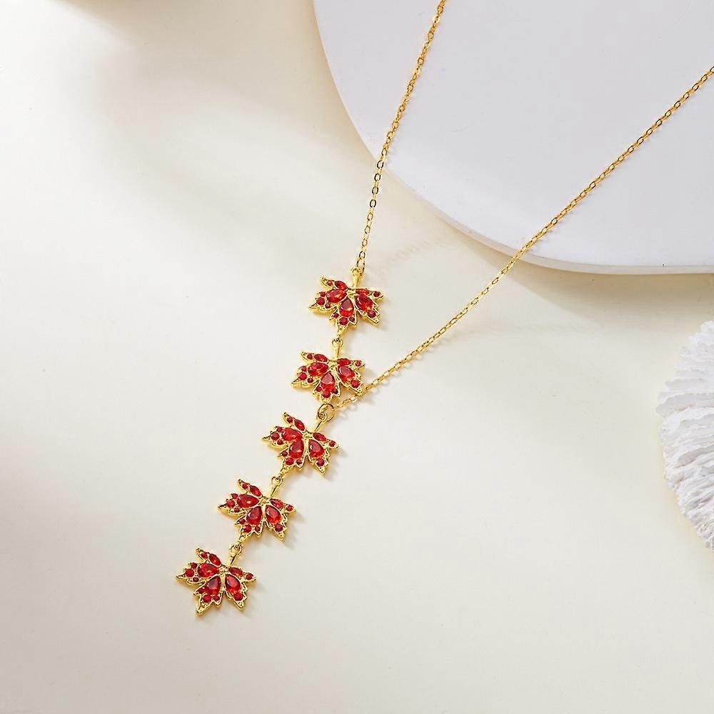Fashion Irregular Maple Leaf Sweater Chain Alloy Pendant Luxury Chic Simple Rhinestone For Women