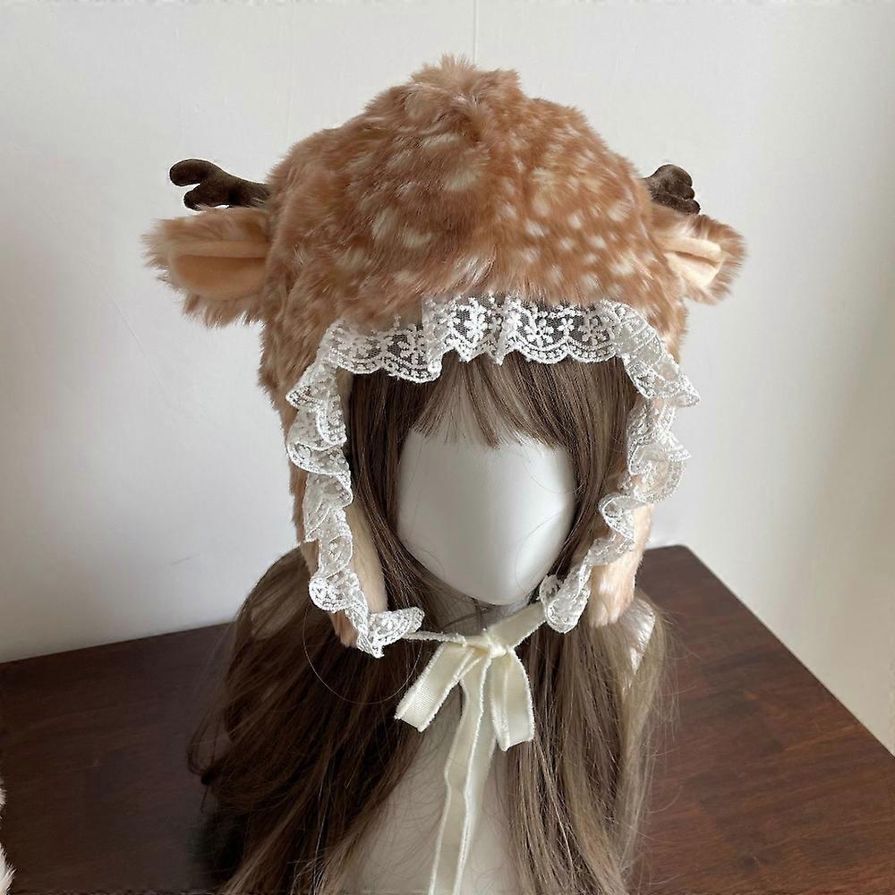 Faux Fur Lace Winter Hat Performance Costume Leg Warmers Reindeer Furry Boots Socks Cover Thicken Chrismas Gifts Ear Protection