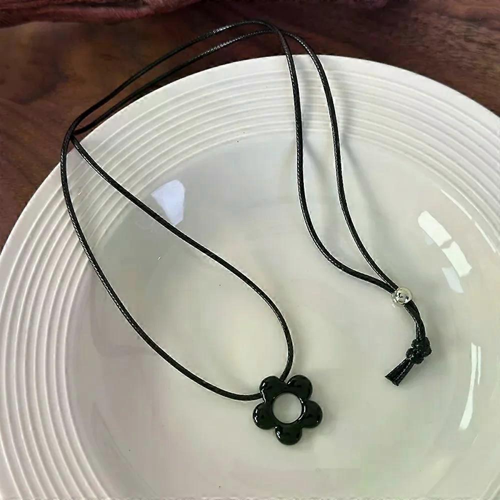 Simple Flower Necklace Adjustable Knot Fashion Hollow Flower Pendant Wedding Accessories Resin Material Sweater Chain