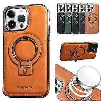 For iPhone 17 Air 17 Pro Max 16 15 14 13 Luxury Leather MagSafe Ring Stand Case