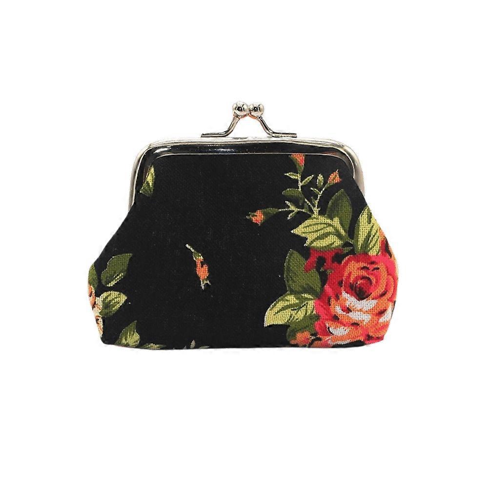 Portable Mini Coin Purse Rose Floral Print Metal Hasp Credit Card Holder Canvas Clutch Wallet for Women