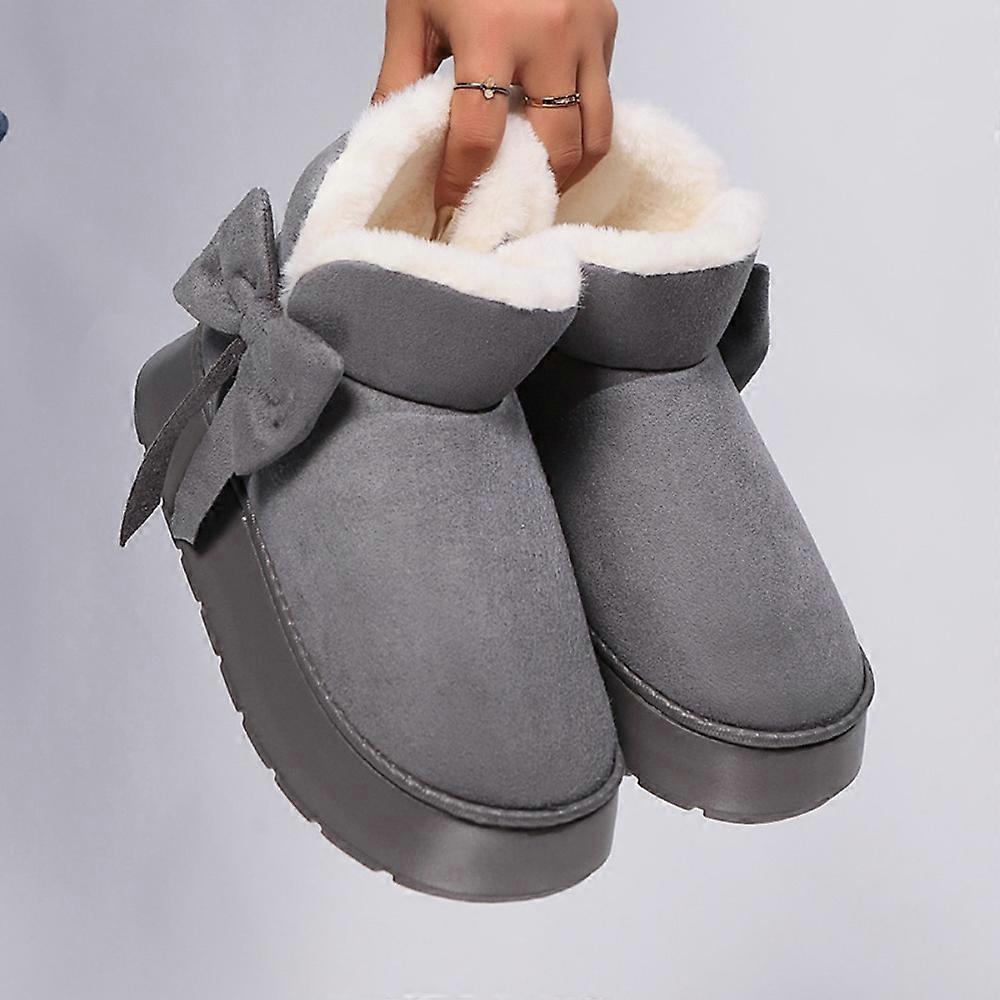 Bow-knot Women's Snow Boots Lining Keep Warm Slip-On Platform Boots Soft Non Slip Winter Shoes For Winter Season Snow Weather