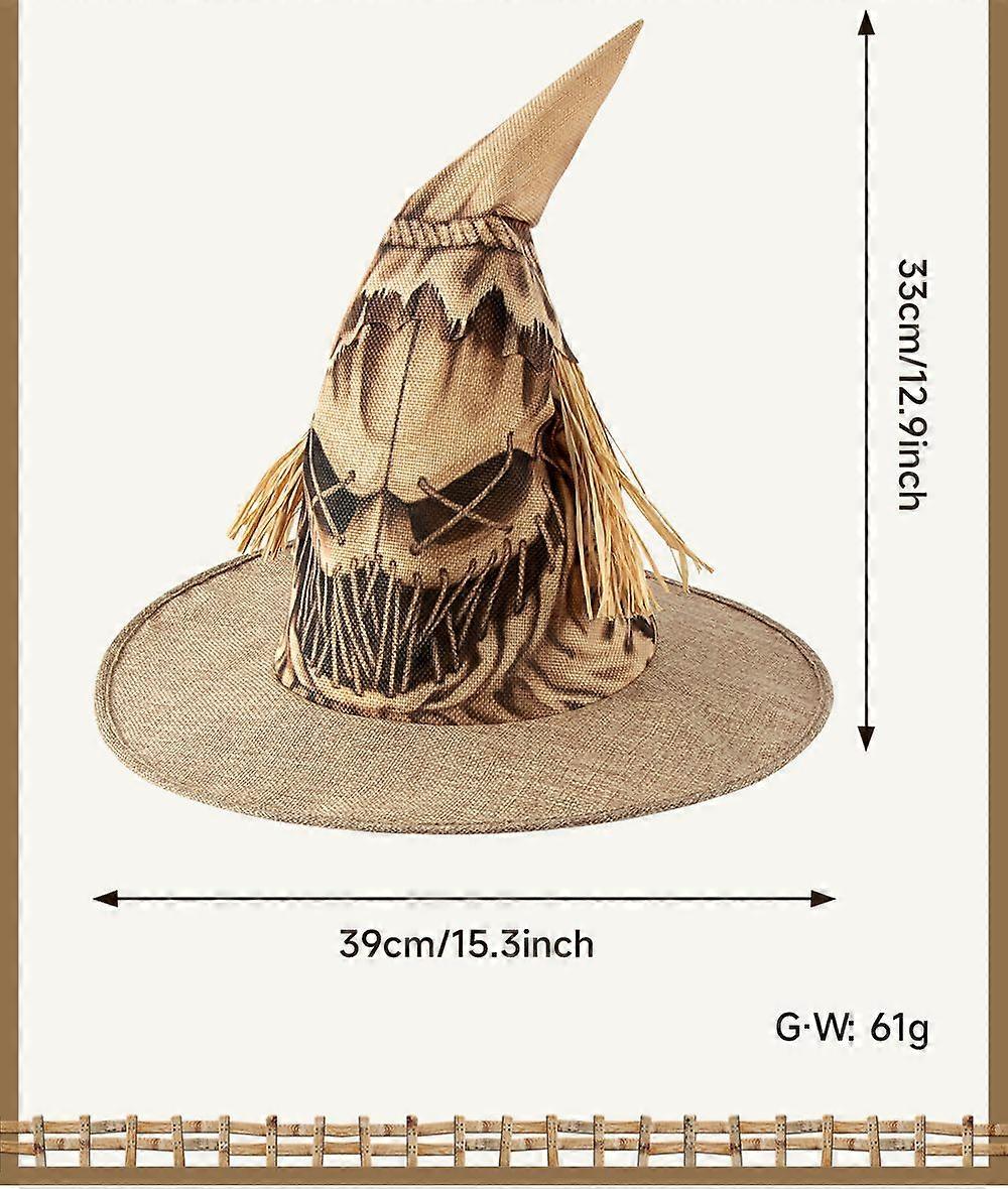 Scarecrow Witch Hat Halloween Cosplay Accessory - Adjustable Brim Fringe Costume Prop (1 Pack)