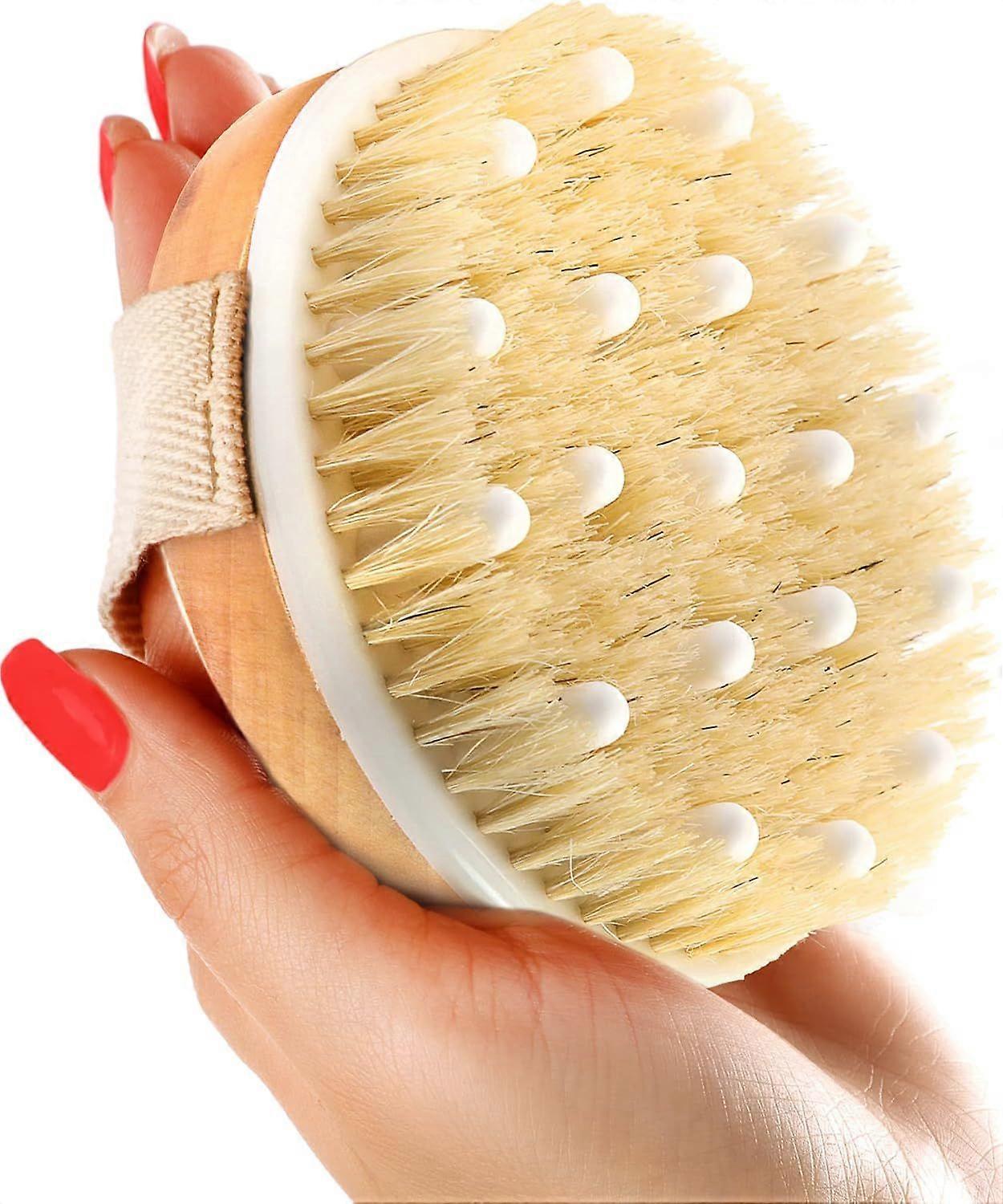 Natural Bristle Dry Body Brush for Lymphatic Drainage, Cellulite Removal, and Physical Exfoliation Stimulates Blood Circulation, 1 Pack