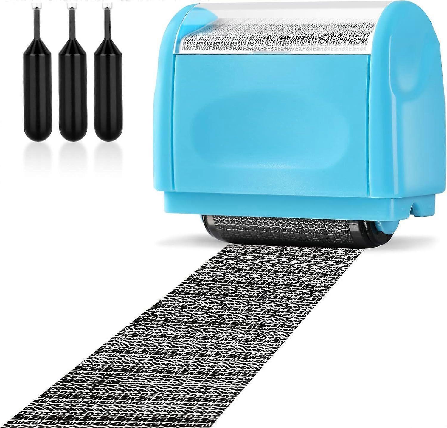 Address Blocker Wide Roller Stamp - Confidential Data Defender With 3-Pack Refills for Anti Theft and Privacy Safety (Blue Stamp + 3 Refills)