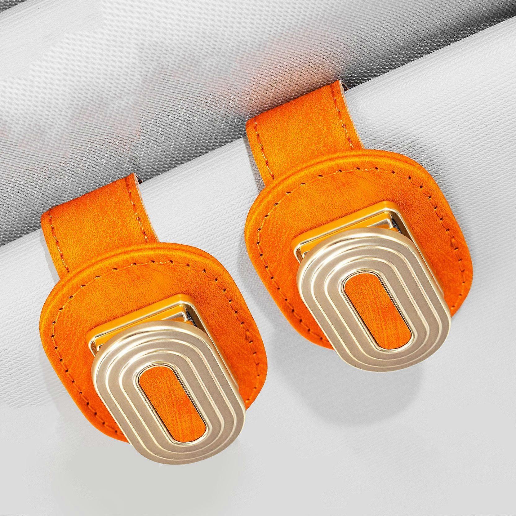 Universal Car Sunglasses Holder - Dual Clip Visor Organiser for Glasses & Cards | Anti-Slip Spring Design All Vehicles (2 Pack Orange)