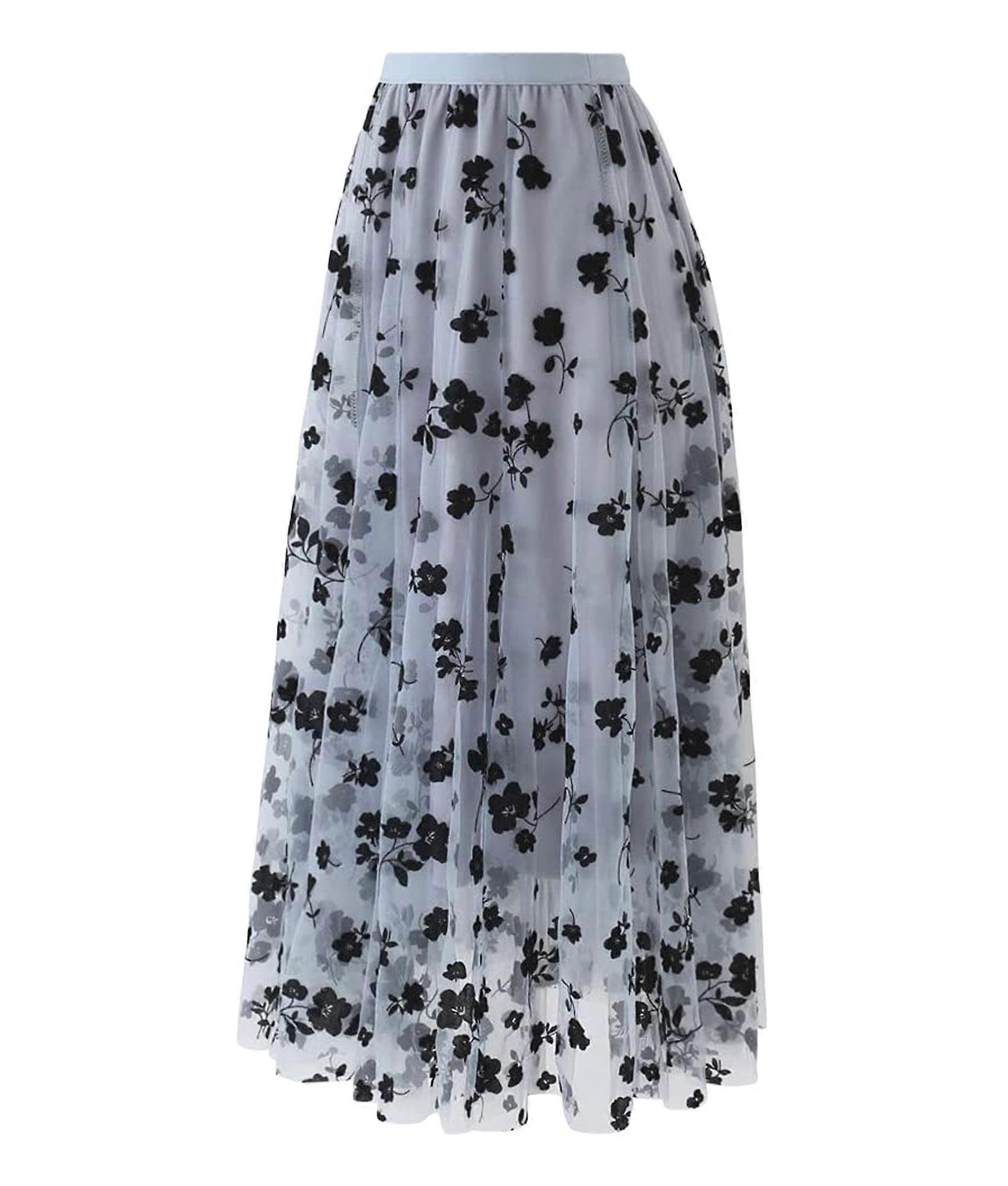 Skirts for Women Midi Long Length Dressy Casual Trendy Summer Tulle A-Line Floral High Waist Skirt Gray XXL