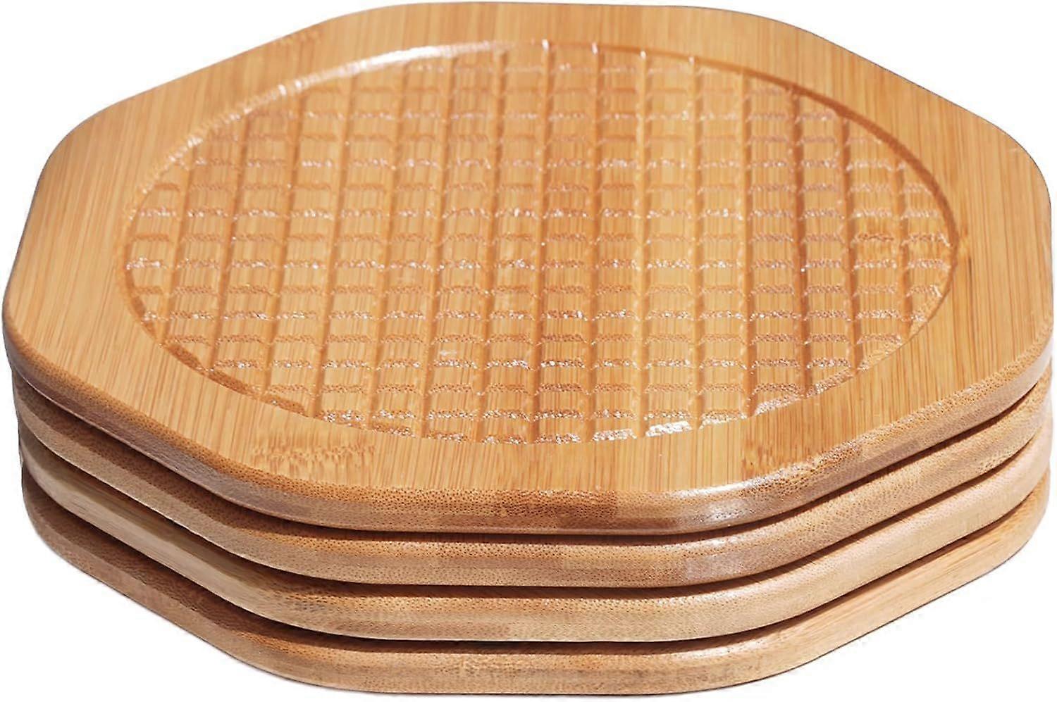 Bamboo Trivet Set of 4,7.5 Inch Octagon Heat Resistant Coasters for Hot Pots & Pans, Kitchen Table & Countertop Protectors