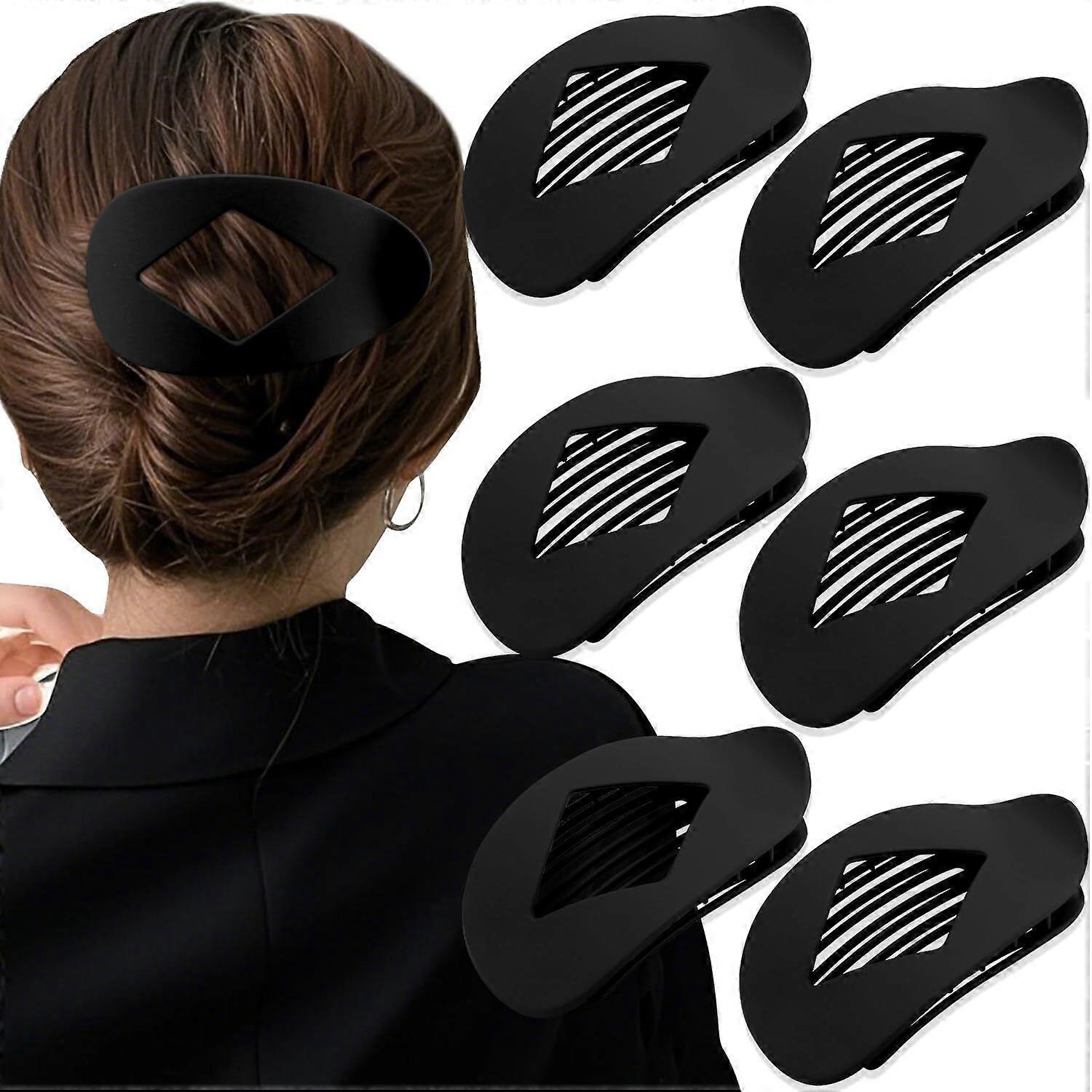 Oval Hair Claw Clips for Women, 6PCS Large Flat Round Duckbill Clips - Non-Slip Strong Hold Barrettes for Thick/Medium/Thin Hair (Matte Black)