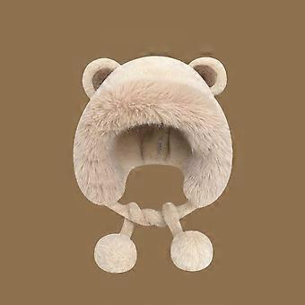 New Warm Winter Hat Ear Protection Lacing Bear Ears Hat Rabbit Ear Velvet Woolen Bucket Hat Women