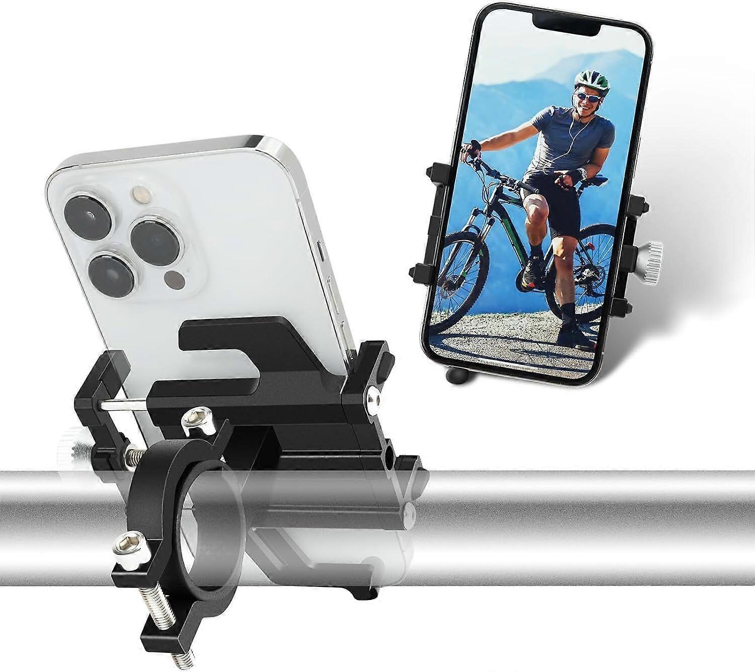 Bike Phone Mount, 360 Rotating Motorcycle Phone Holder with antl-Vibration & Video Recording, Universal Handlebar Clamp for iPhone Huawei Samsung 2.2-