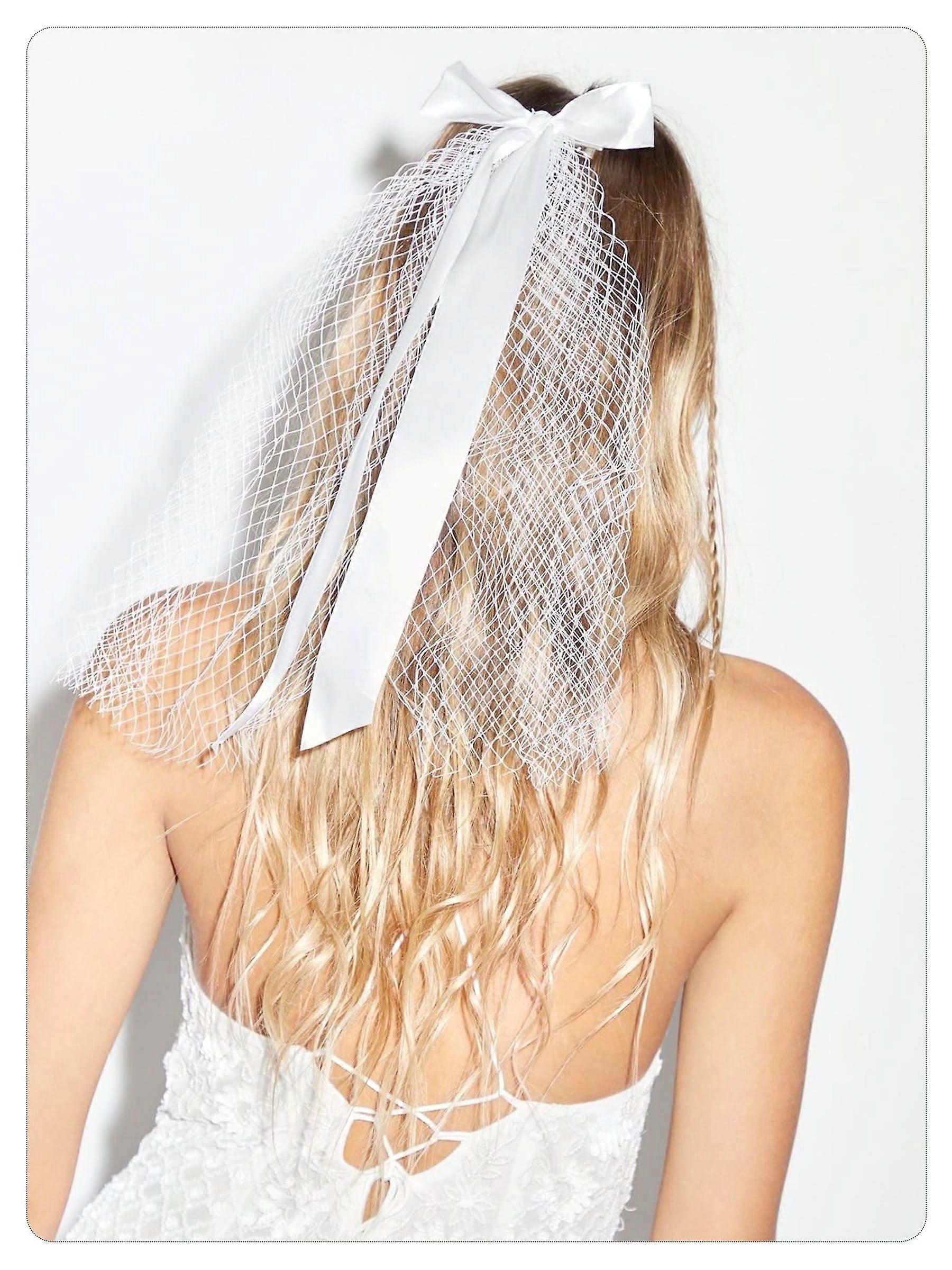 Bridal Veil with White Bow, Elegant Tulle Wedding Hair Clip for Bachelorette Parties, Adjustable Layered Veil for Women and Girls