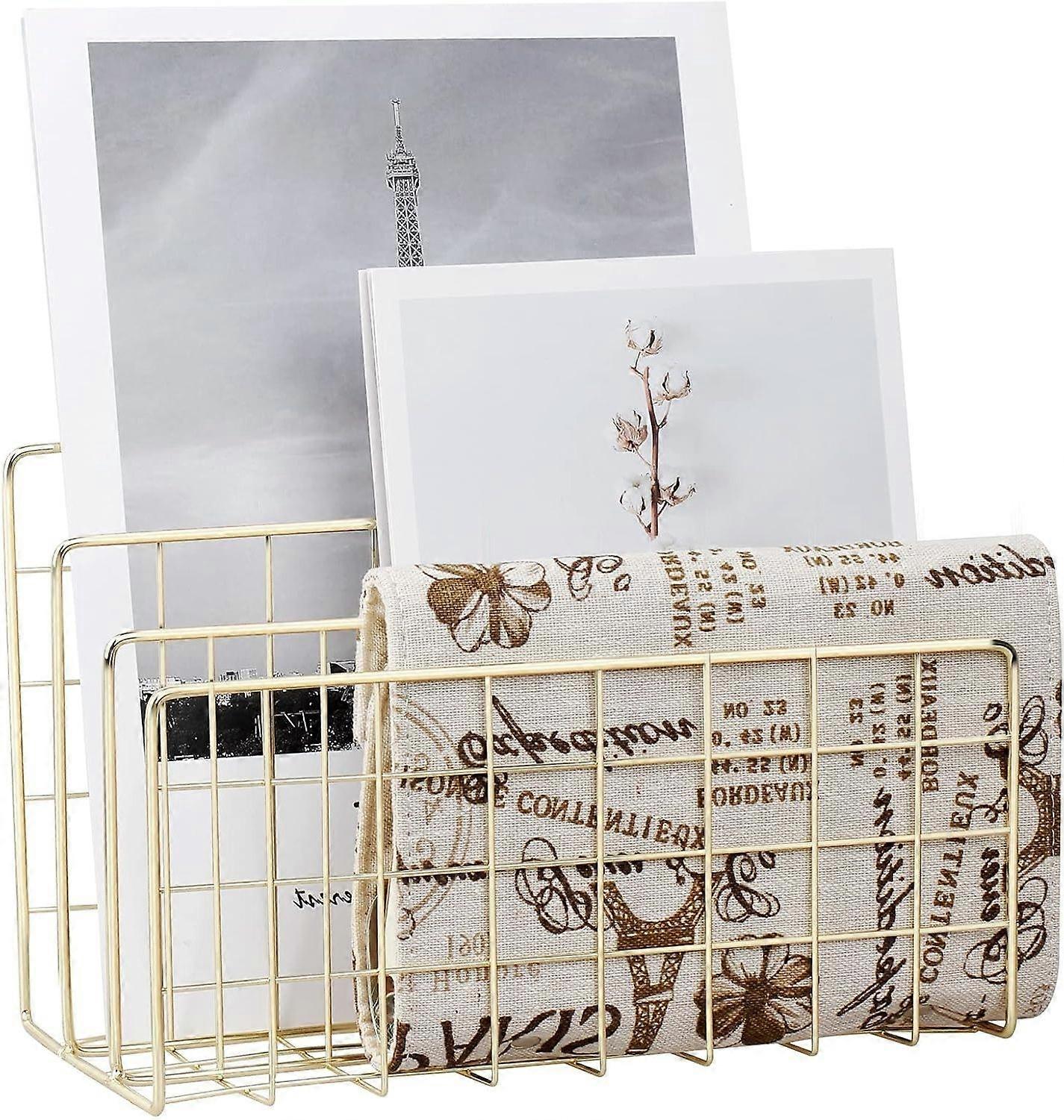 Desktop Mail Organlzer, 3-Slot Metal File Sorter, Gold Wire Letter Holder for Mails, Books & Postcards - Space-Saving Office & Home Document Storage (