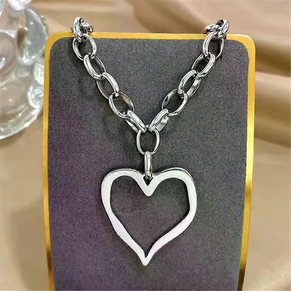 Gifts Retro Heart Love Necklace Stainless Steel Hollow Exaggerated Sweater Necklaces Jewelry Accessories Heart-shaped Pendant