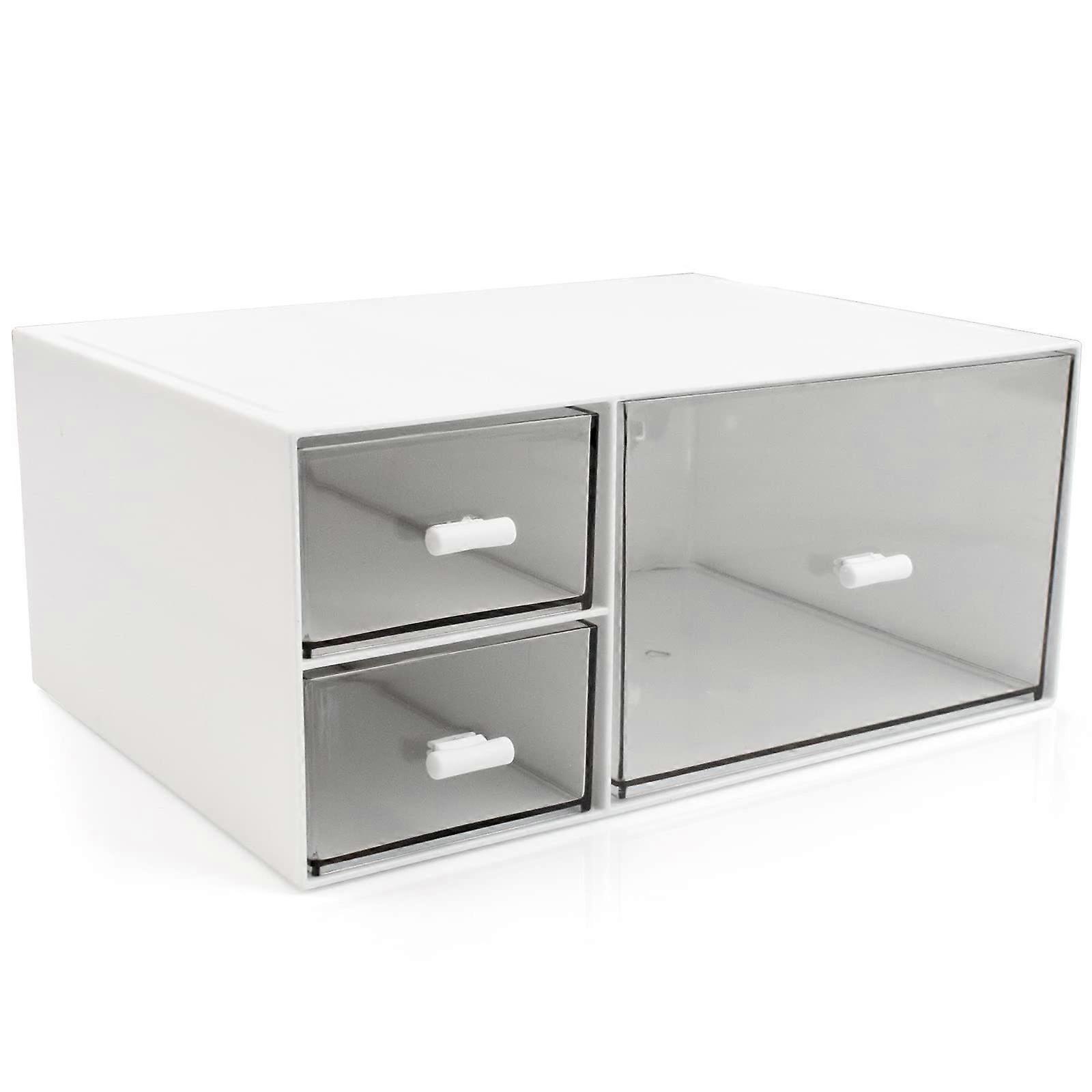 3-Tier Stackable Desk Organlzer, White Plastic Storage Drawers with Multiple Compartments for Office Supplies, Makeup & Bathroom Organization Accessor