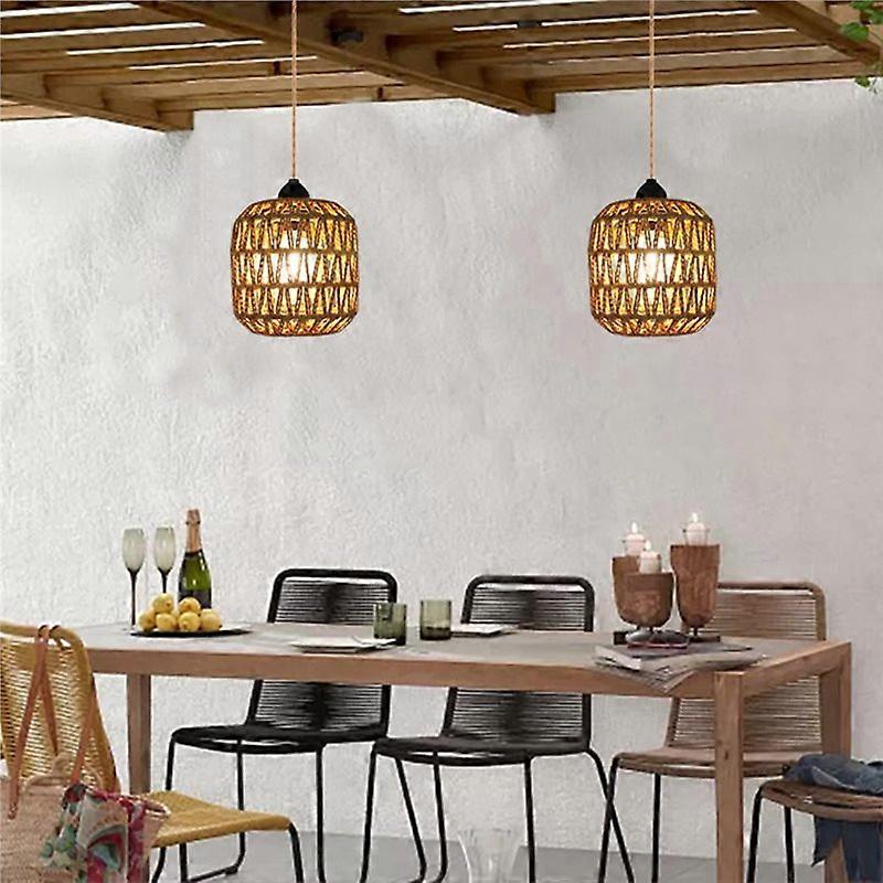 ABVJ-Woven Rattan Pendant Light Battery Powered Outdoor Chandelier For Gazebo, Pergola Porch, Indoor& Outdoor Decor