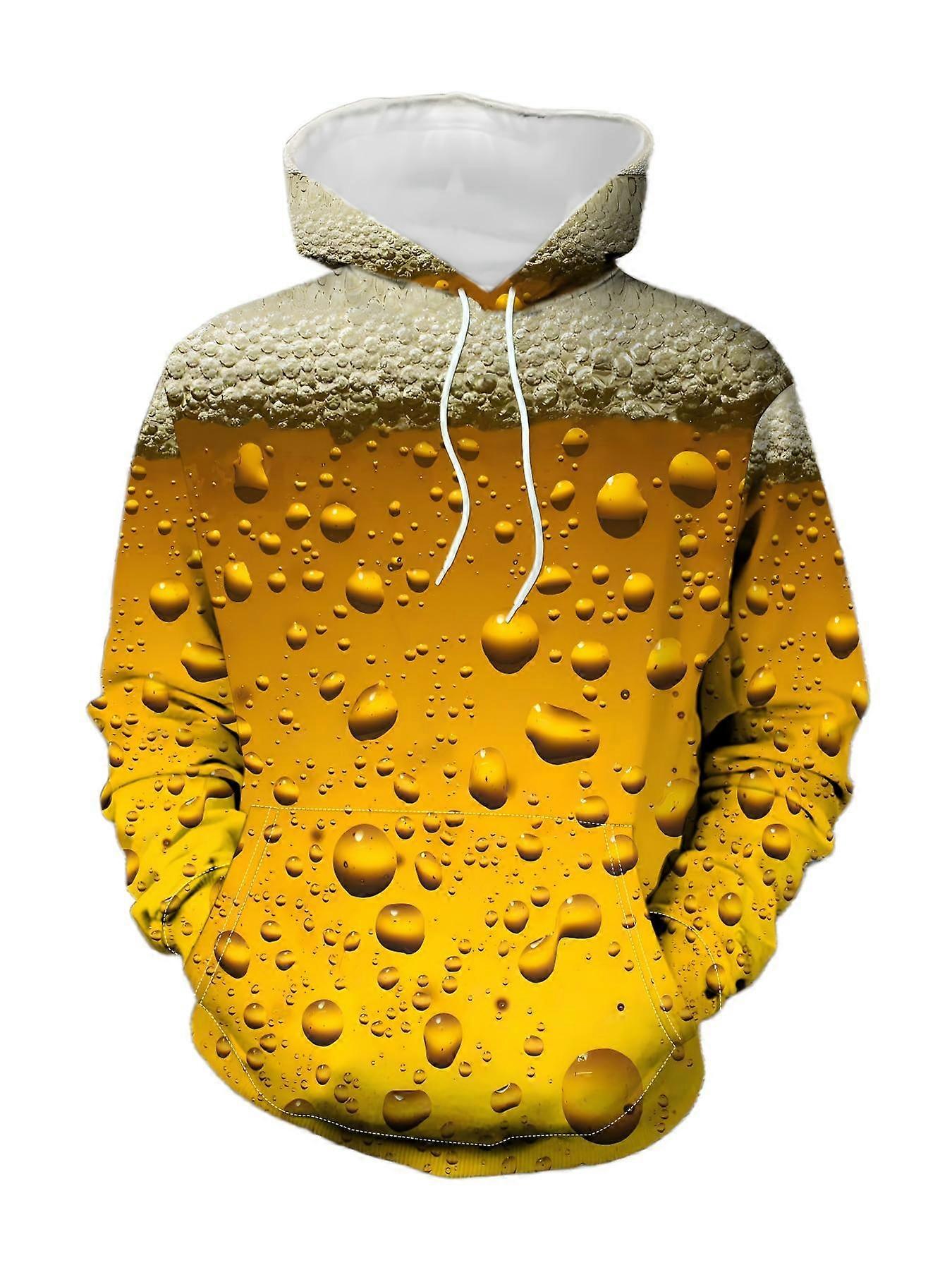 Men’s Fun Graphic Hoodie Beer Bubbles Print Casual Streetwear Pullover
